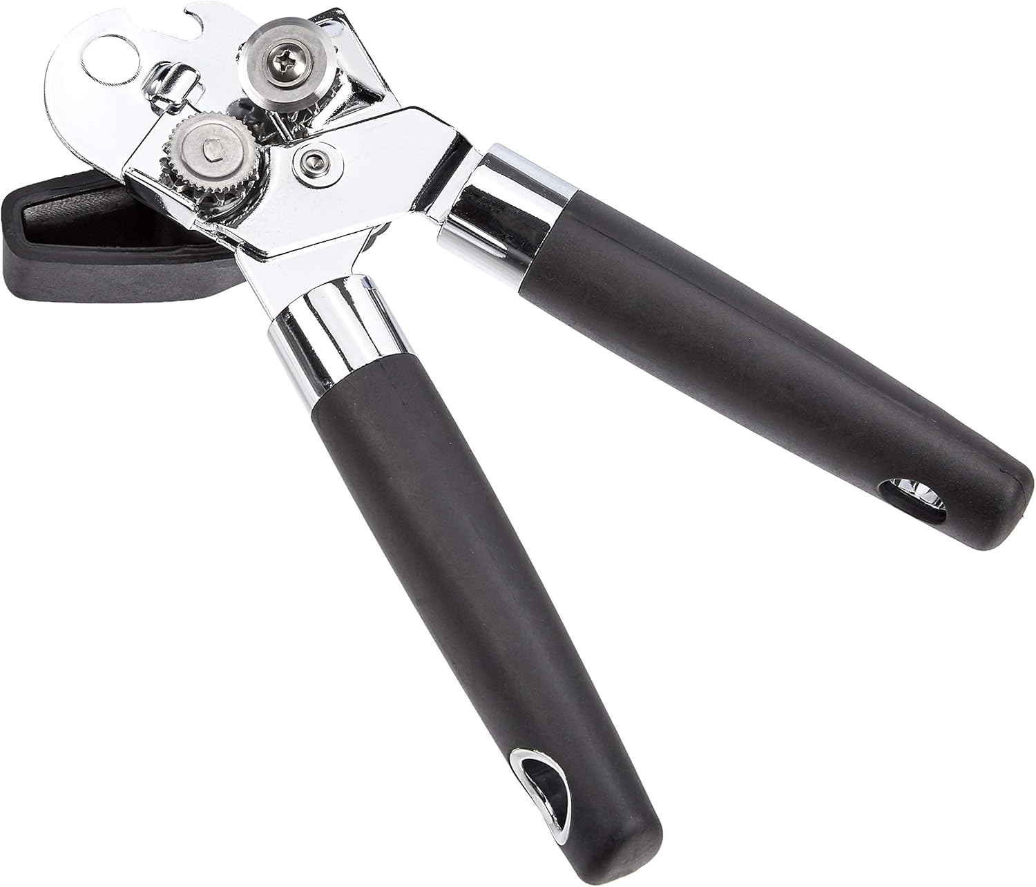 - COMFORTABLE GRIP: The black can opener features a black soft rubber-coated handle and oversized turning knob for a comfortable, non-slip grip
