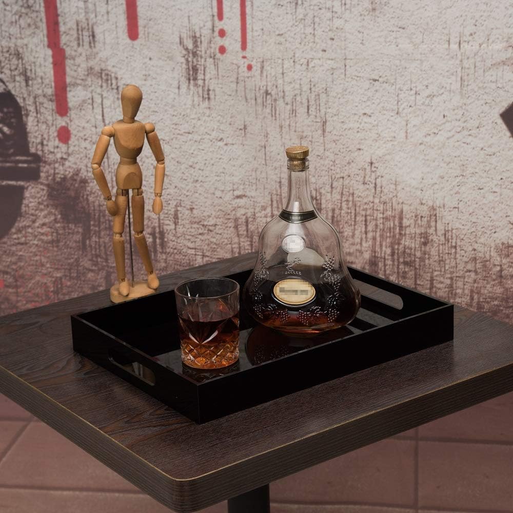 Glossy Black Sturdy Acrylic Serving Tray with Handles-12x16Inch-Serving Coffee,Appetizer,Breakfast,Butler-Kitchen Countertop Tray-Makeup Drawer Organizer-Vanity Table,Ottoman Trays-DecorativeTray