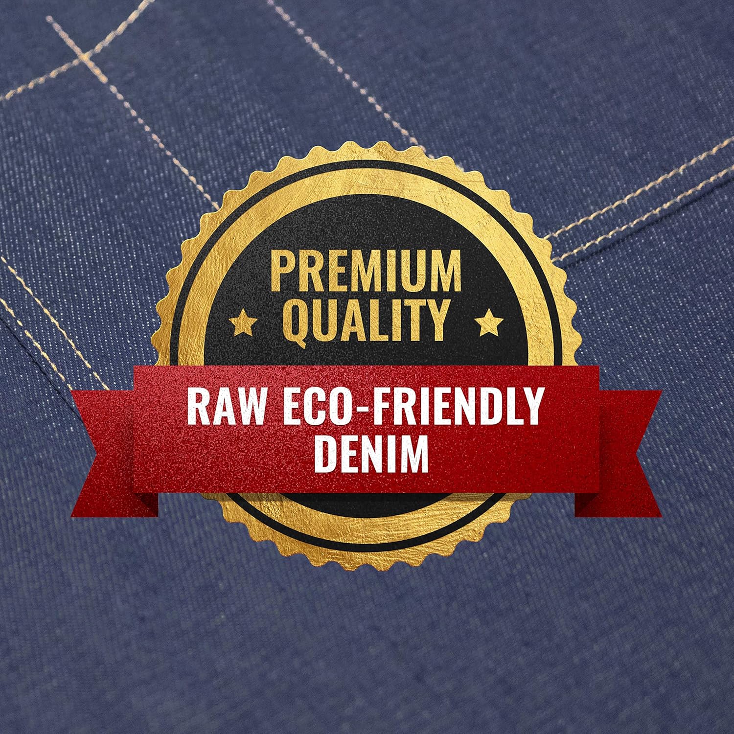 - MORE POCKETS, HANDCRAFTED, DURABLE QUALITY – This apron is handmade with our PROPRIETARY PROFESSIONAL 9 OZ Denim: HARD TO STAIN, EASY TO CLEAN and LONG LASTING. Still, ERGONOMIC UTILITY POCKETS, thick top and bottom hems DOUBLE STITCHED for strength and structure. 100% cotton straps to avoid allergies and guarantee your comfort, durable anti-rust and anti-allergy hardware. 100% REAL REVIEWS - DIFFERENT FROM COMPETITION, WE DON'T PAY, BUY OR ASK FOR FAKE REVIEWS. COMPARE.
