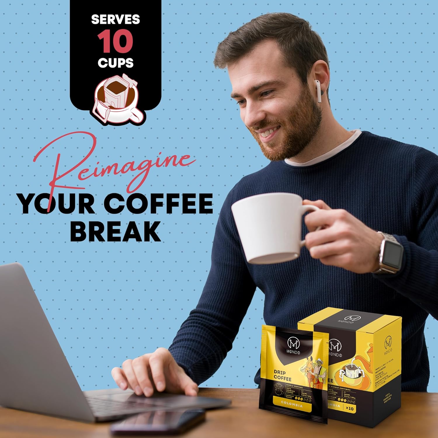 - Portable Pour-Over Perfection - Mondo Drip Coffee simplifies your coffee ritual. This compact, disposable coffee drip bag is your go-to choice for camping, travel, the office, or home brewing. Just add hot water!