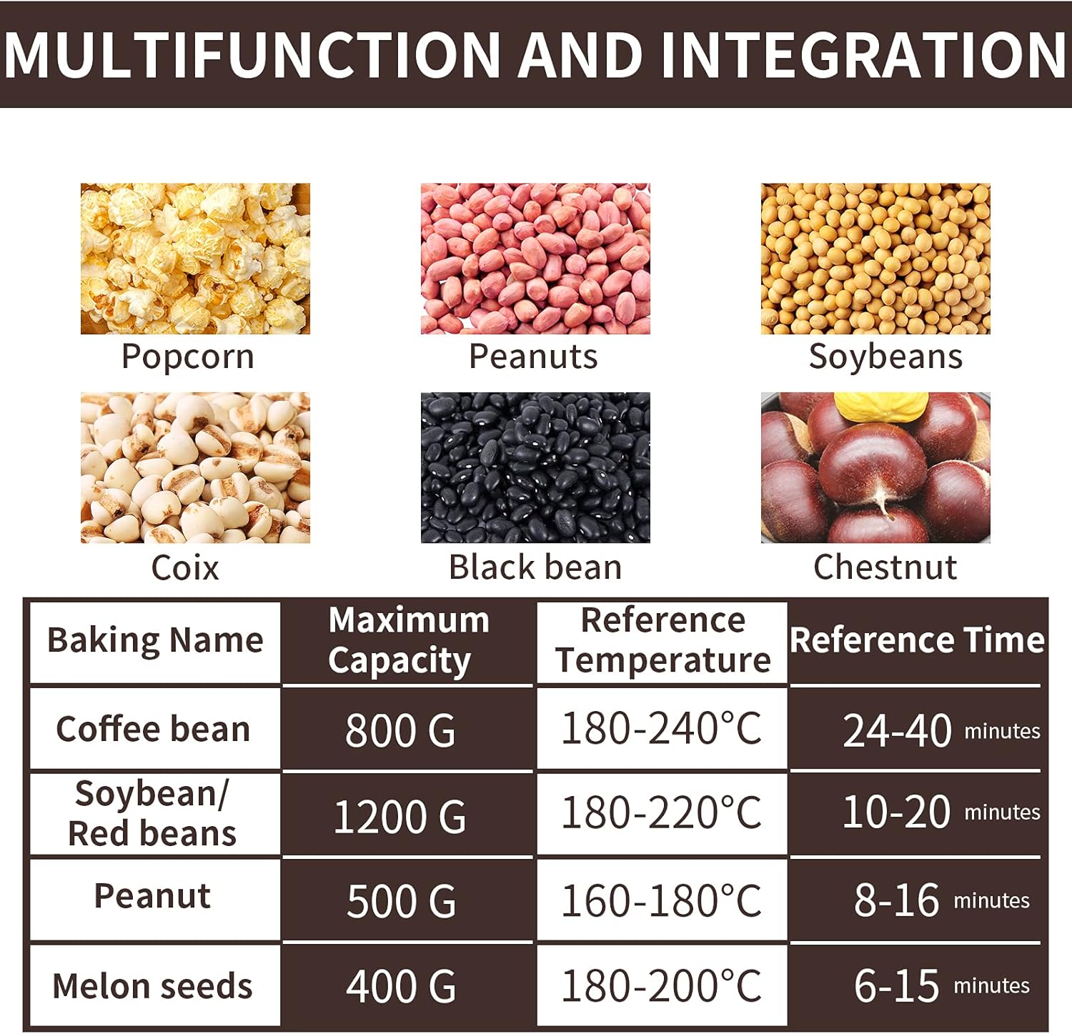 - Multi-functional Roasting, Multi-purpose: support coffee beans, cocoa beans, nuts, grains and other ingredients roasting, suitable for families, cafes, restaurants, bakery workshops and other use scenarios.