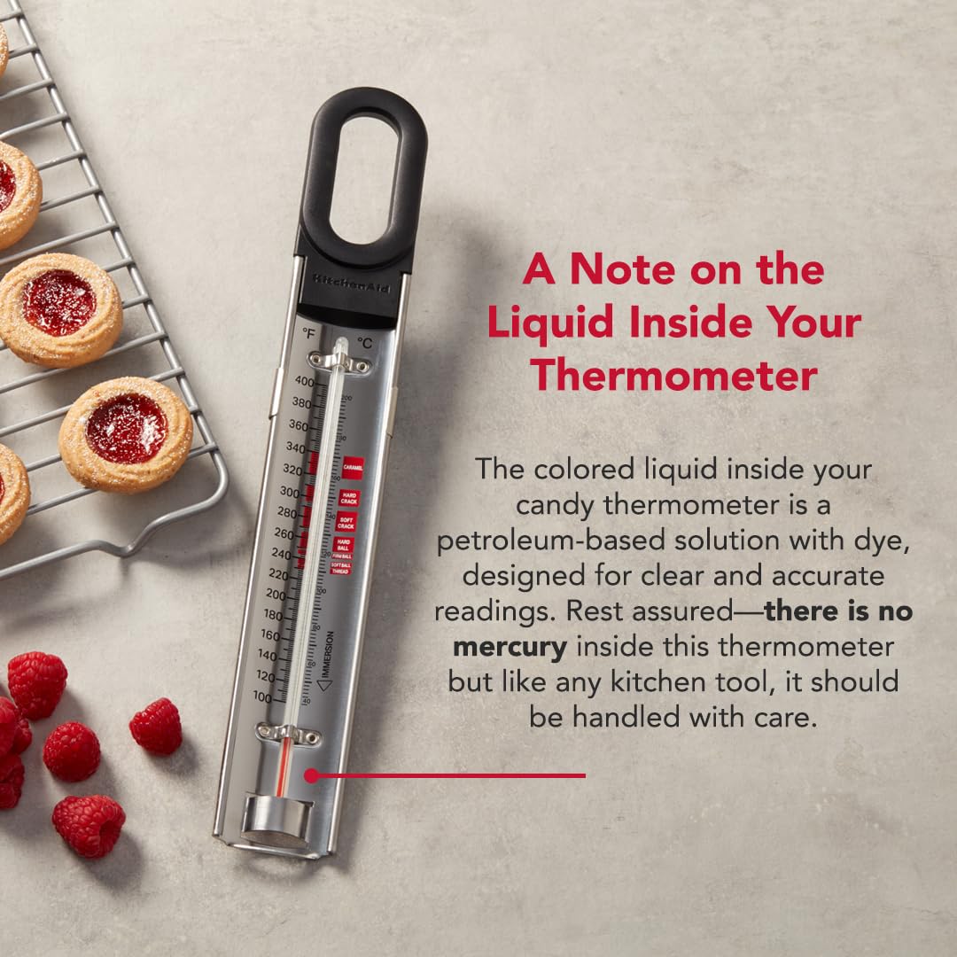 KitchenAid KQ907 Curved Stainless Steel Paddle Style Candy and Deep Fry Thermometer with pan clip, TEMPERATURE RANGE: 100F to 400F, Black