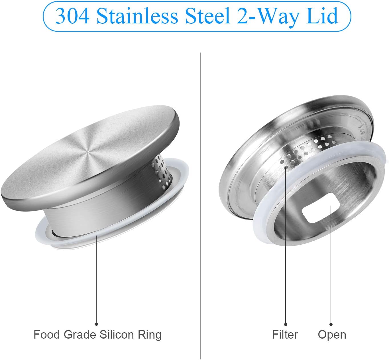 - Functional rust-proof stainless-steel lid: 304 stainless steel lid features 2-way outlets with large holes and small holes for filtration. It’s quite multi-functional for family use. The food-grade rubber ring makes sure the lid is tight and does not fall off while pouring.
