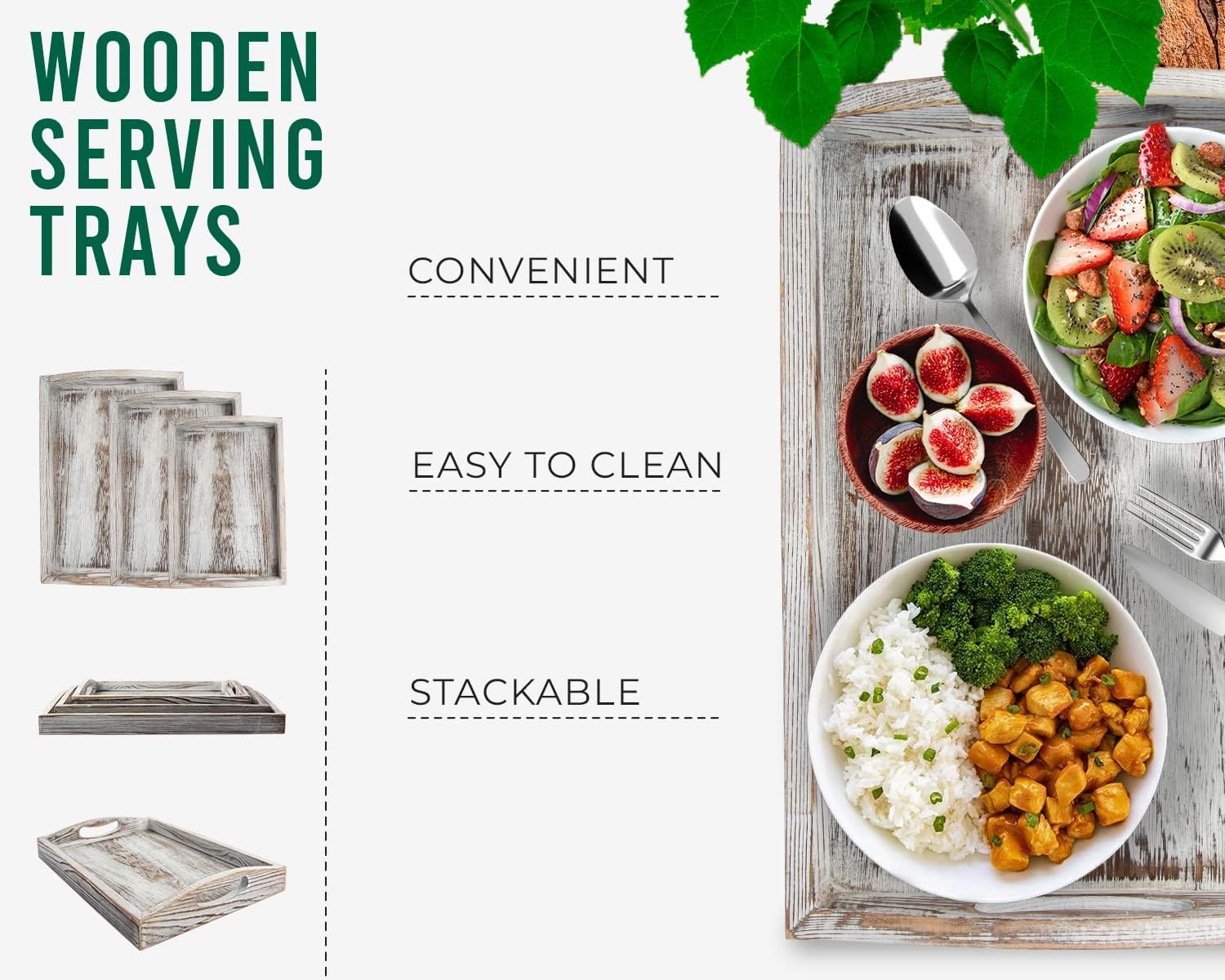 Serving Trays Set of 3 - Ottoman Wood Trays for Entertainment, Food and Décor - Rustic Farmhouse Distressed Wood Finish - Rustic White