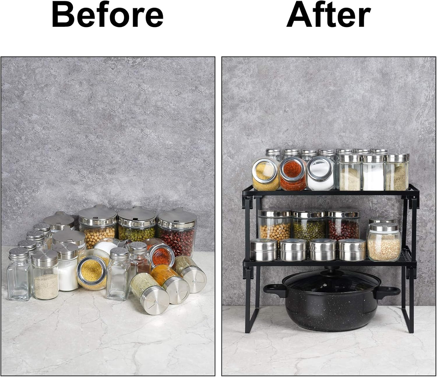 Tomorotec [2 Pack] Stackable Kitchen Storage Shelf Rack, Foldable Spice Rack Cabinet Organization Storage Shelves, Kitchen Shelves, Kitchen Counter & Cabinet Shelf Organizer,