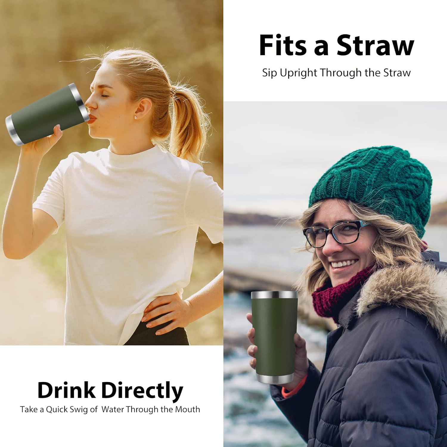 DOMICARE 20oz Stainless Steel Tumbler Bulk with Lid, Double Wall Vacuum Insulated Travel Mug, Powder Coated Coffee Cup (Army Green, 12)