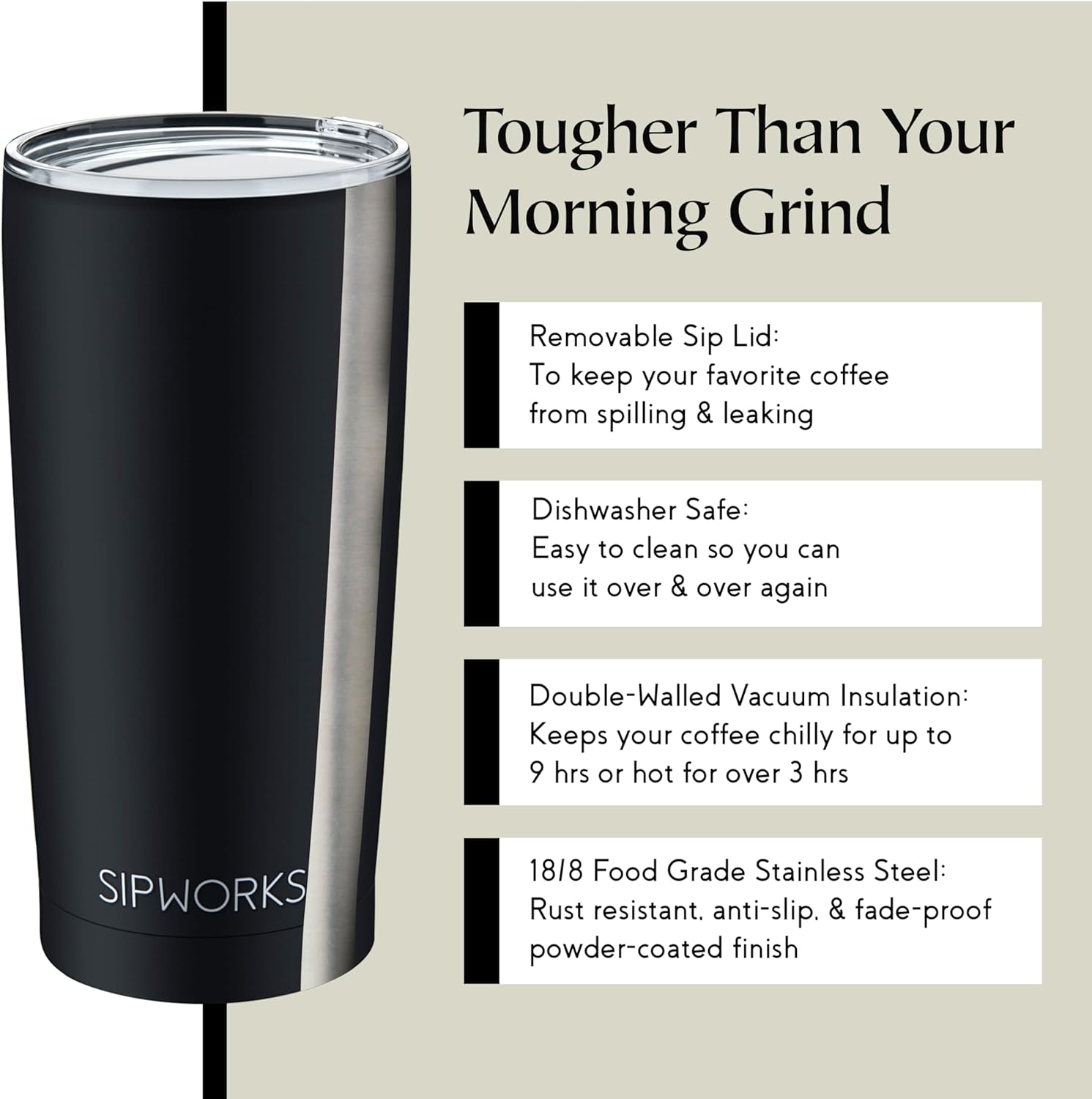 - Raise Your Tumblers with Us: Sip in style with Sipworks’ stunning collection of unique insulated tumblers that will keep the vibe and taste of your drink just the way you like it — whether for fancy parties, boozy brunches, or daily routine.