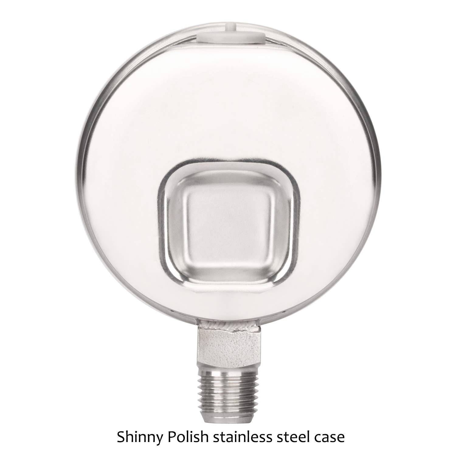 - 2-1/2" dial size, 1/4"NPT lower mount, TIG welding between case and socket