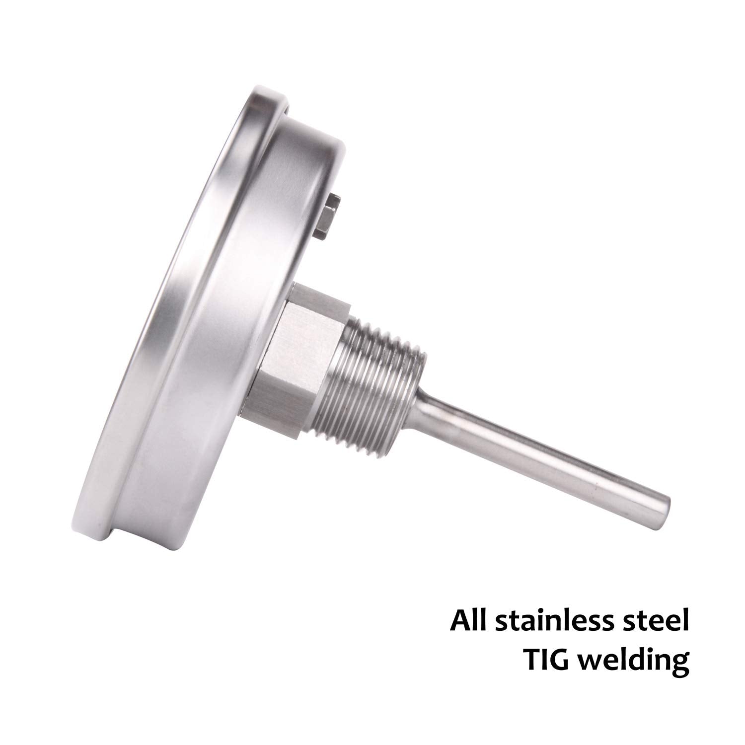 Measureman Fully Stainless Steel Bimetal Dial Thermometer, 3" Dial, 2-1/2" Stem, 50-550 deg F/10-260 deg C, -1% Accuracy, Adjustable, 1/2" NPT Back Mount