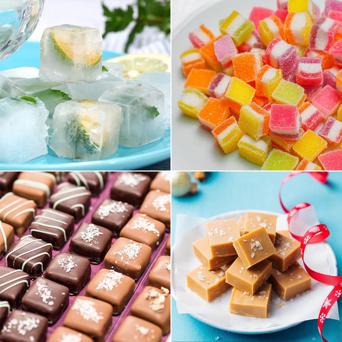 - APPLICATION SCOPE: The chocolate candy molds safe for oven, microwave, dishwasher, fridge, freezer. Wide heat resistant range: -104℉ to 446℉(-40℃ to 230℃), square gummy molds perfect for family or commercial use