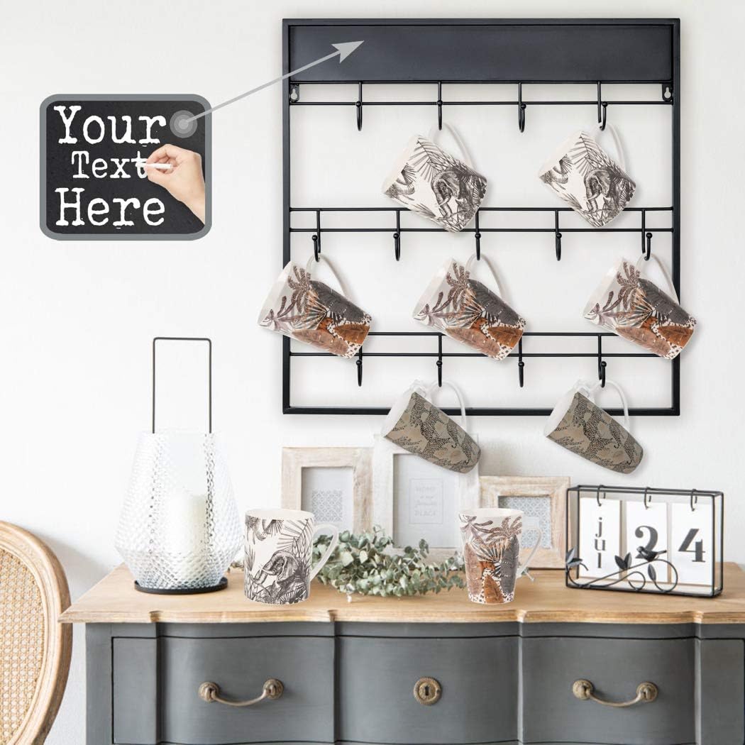 AJART Coffee Bar Decor Mug Holder: 22" Large Square Coffee Cup Rack for Home Kitchen Office Dining Room Cafe Bar