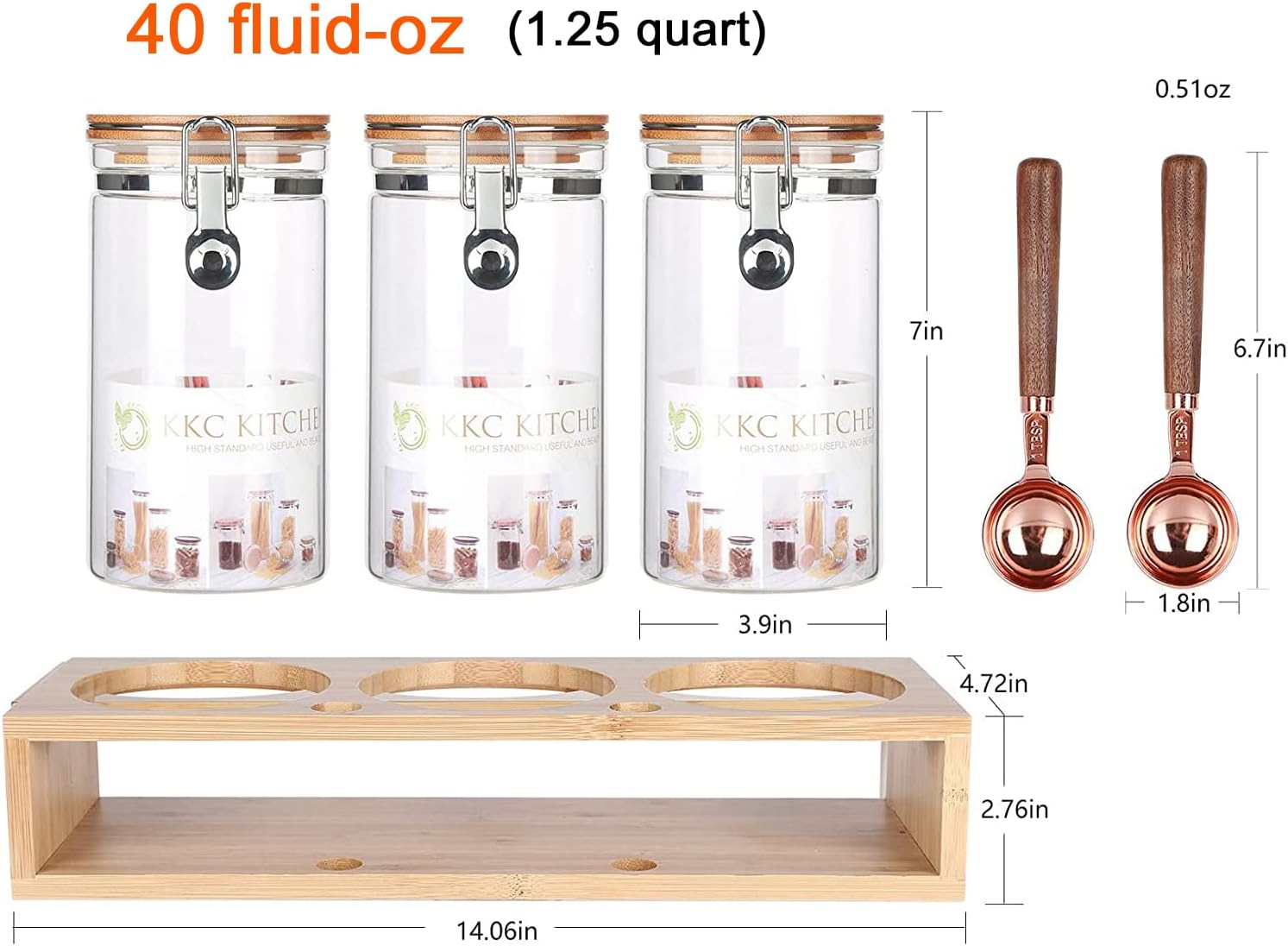 KKC Glass Airtight Coffee Bean Storage Containers for Counter,Ground Coffee Holder Jars,Airtight Glass Countertop Storage Jar Canisters with Spoon for Coffee,Loose Tea,40 Fluid-oz,Pack of 3