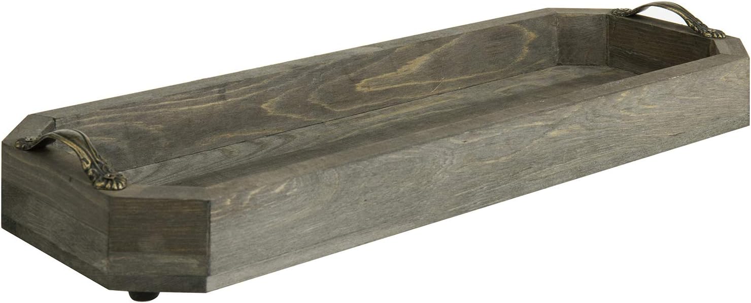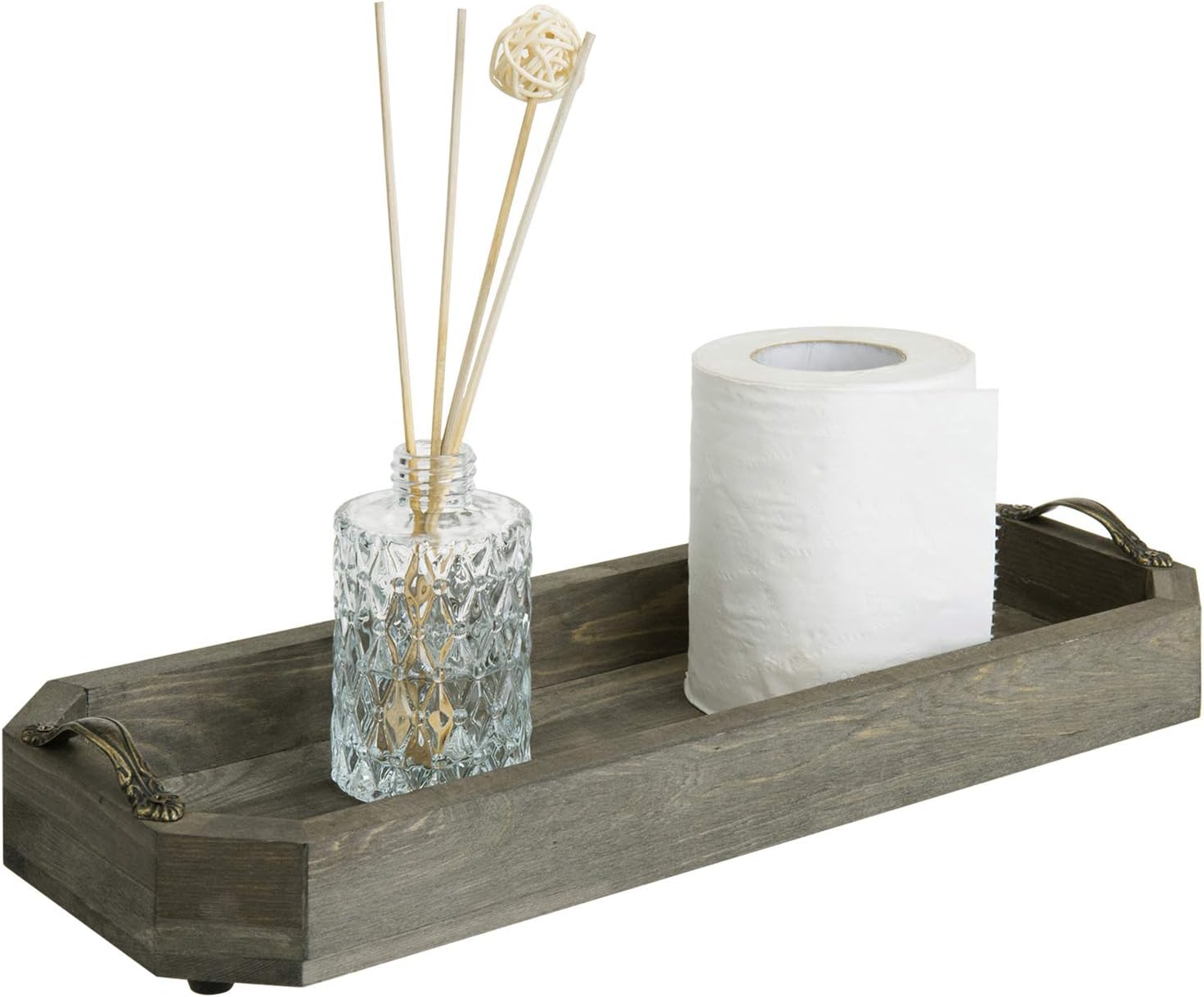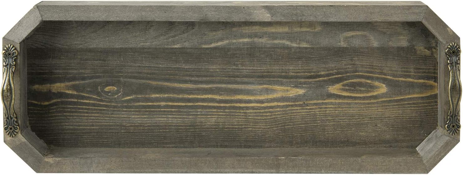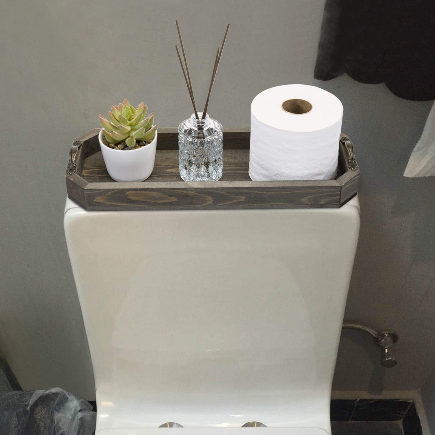 MyGift Wooden Vanity Tray, Rustic Gray Solid Wood Toilet Tank Tray - Decorative Octagonal Cosmetic Organizer with Antique Metal Handles