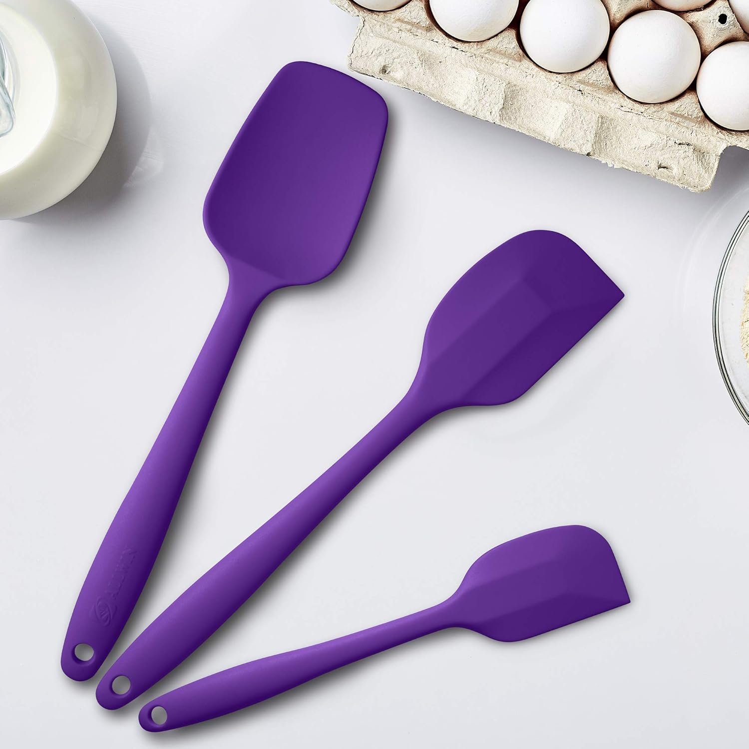 Silicone Spatula 3-piece Set, Ergonomic Handle High Heat-Resistant Spatulas, Non-stick Rubber Spatulas with Stainless Steel Core, Purple