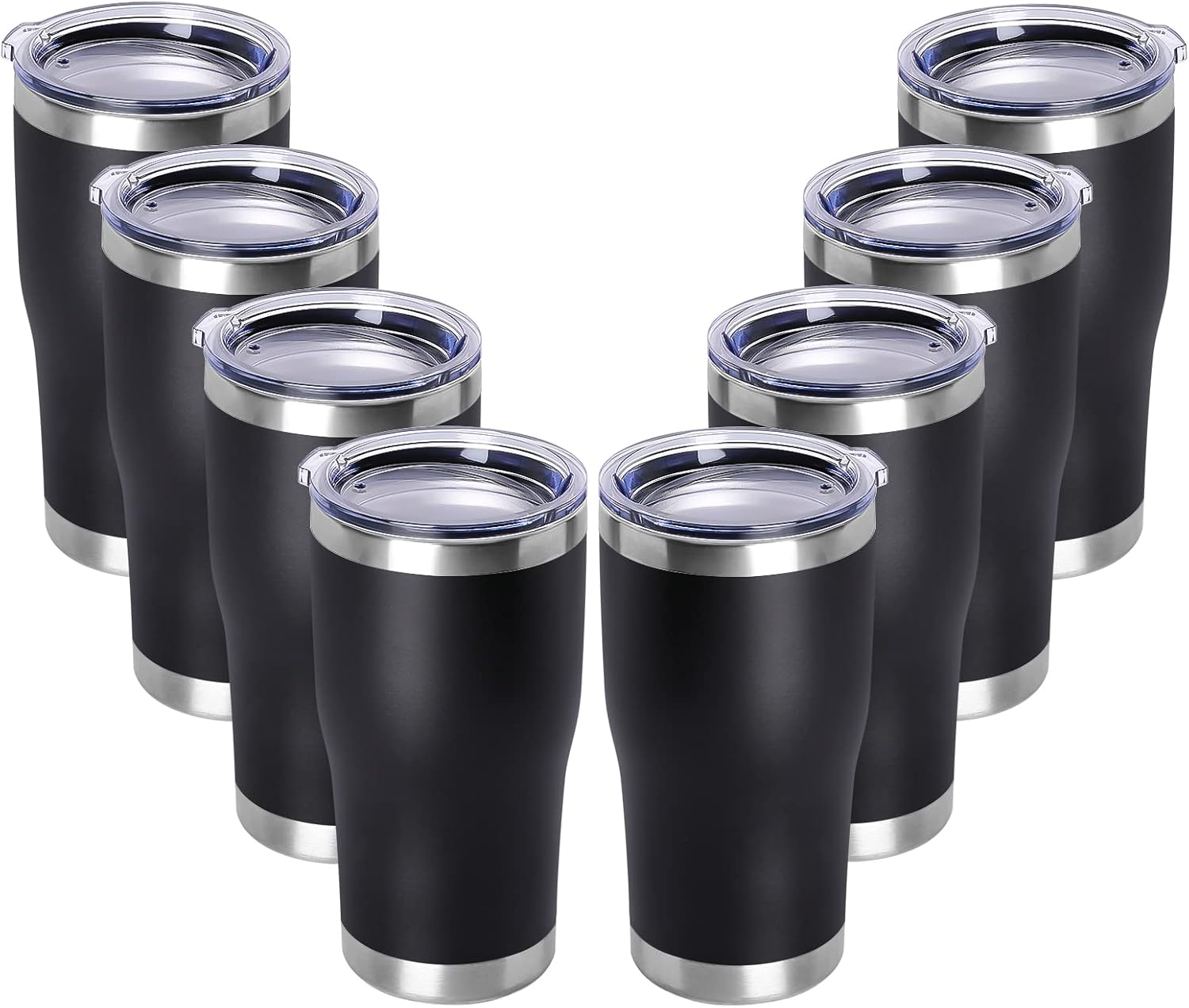 DOMICARE 20oz Tumbler with Lid Stainless Steel Tumblers Bulk, Double Wall Vacuum Insulated Coffee Travel Mug Powder Coated Tumbler, 8 Pack Black