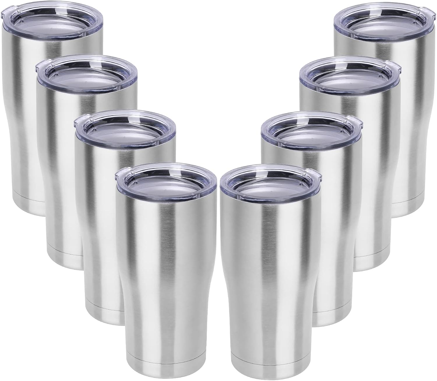 DOMICARE 20oz Tumbler with Lid Stainless Steel Tumblers Bulk, Double Wall Vacuum Insulated Coffee Travel Mug, 8 Pack Stainless Steel