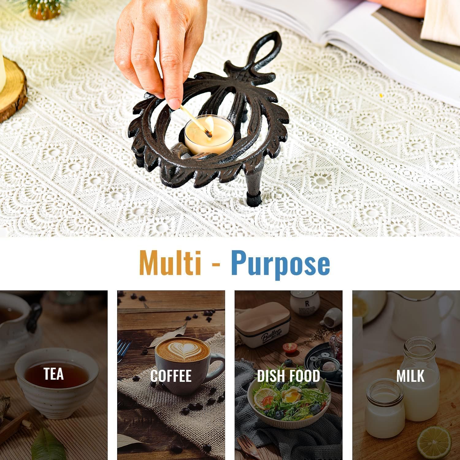 - It can be a teapot heating tray,dish food warmer,teapot milk coffee warmer,a tealight holder,even a trivet.It‘s realy a powerful performance and super easy to use.Definitely a good helper of your household life.