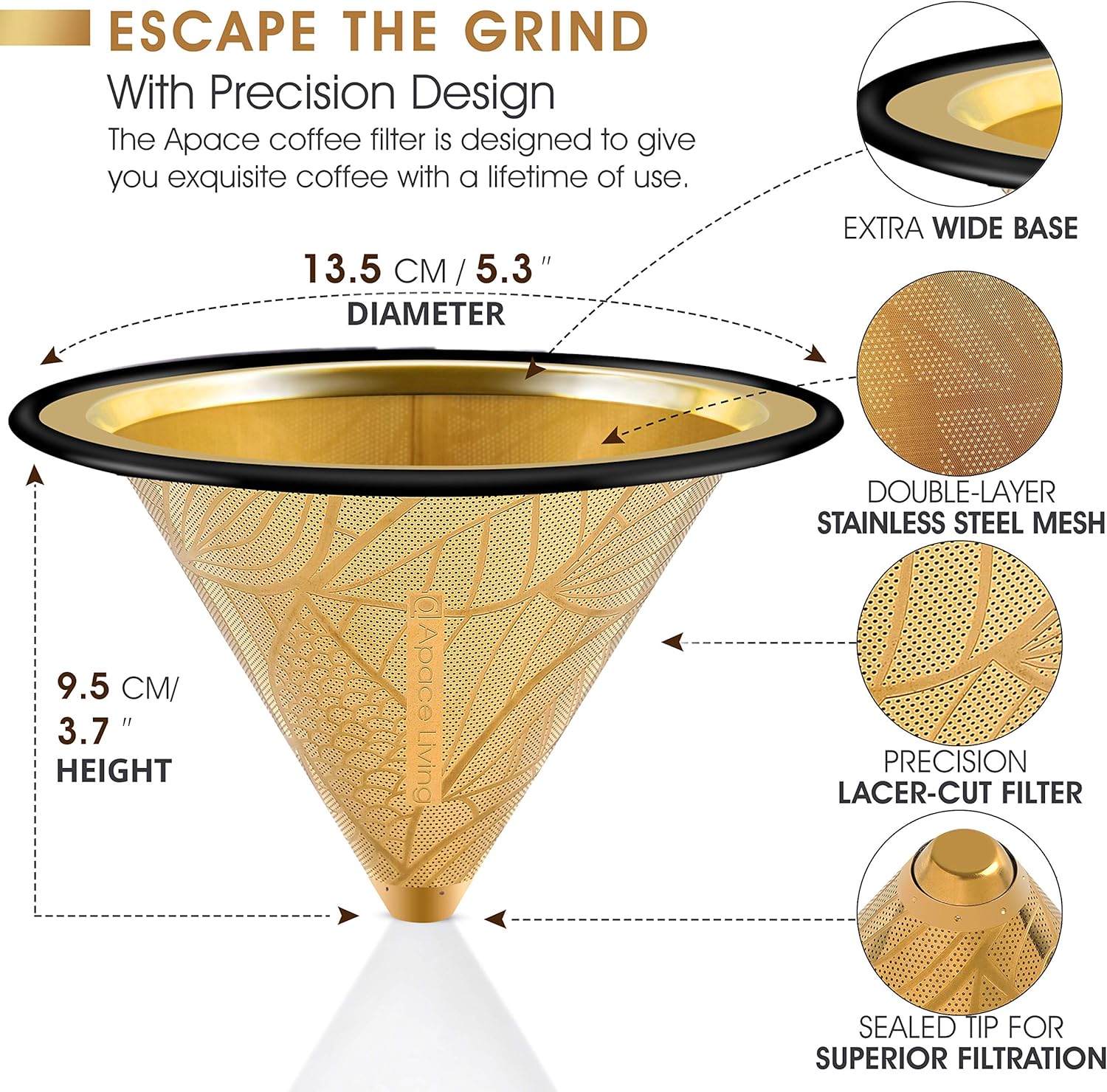 - ☕FITS OVER THE RIM OF YOUR COFFEE FILTER HOLDER: The wide tops of our filters fit over the rim of popular pour over coffee makers. This means the cone filter is easy to remove for cleaning.