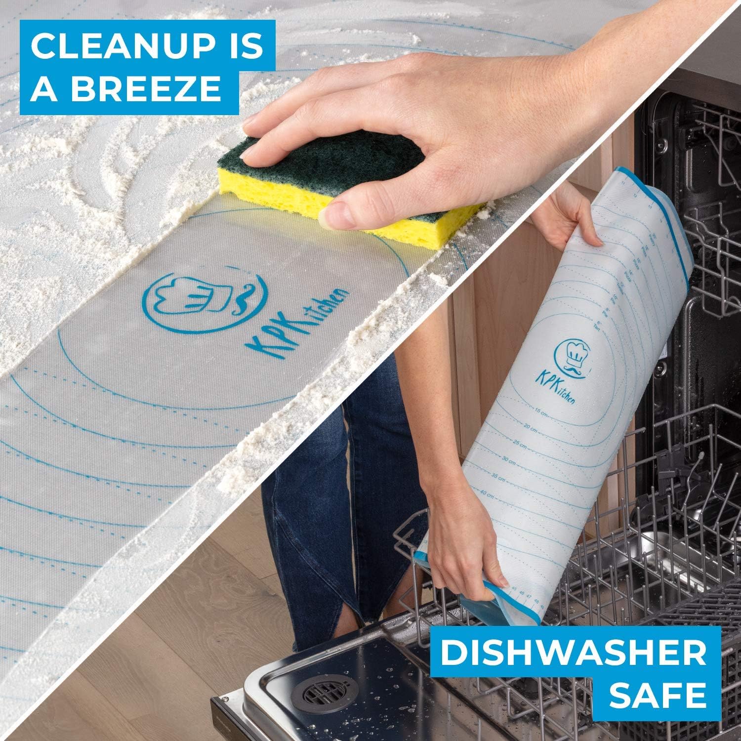 - 🙏 CLEAN UP IS A BREEZE! Because our dough rolling mats are super easy to clean & dishwasher safe, you‘ll be able to clean and wipe remaining food easily off or just put them into the dishwasher. This is great because this means you will save so much time by not having to scrub your dough mat for rolling extra large clean. And with our extra large silicone baking sheet size you keep the mess on the dough board and off your worktop.