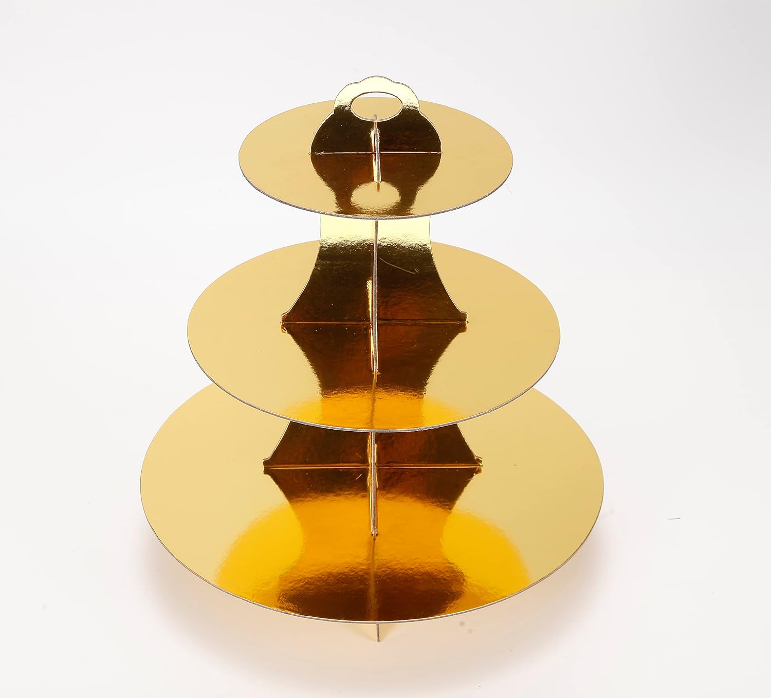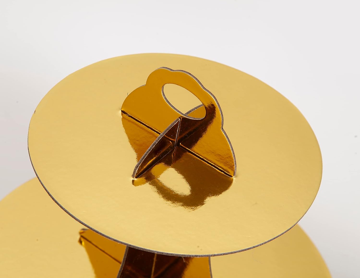 3-Tier Cupcake Stand, Gold Cardboard Cake Stand Holder, Tiered DIY Cupcake Stand Tower for Dessert Table Displays, Birthday Theme Party Favors Decoration, Floral Tea Party, 12" W x 12.8" H