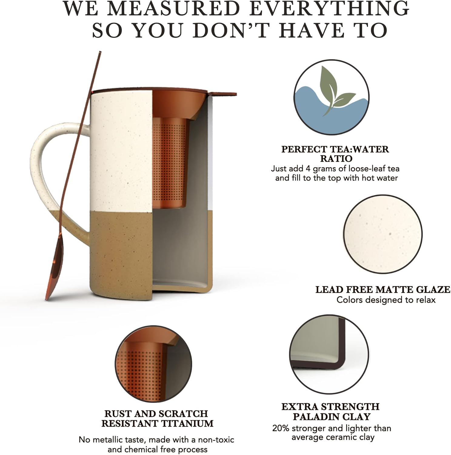 Mora 12oz Ceramic Tea Cup with Infuser, Spoon, Lid - Microwave & Dishwasher Safe