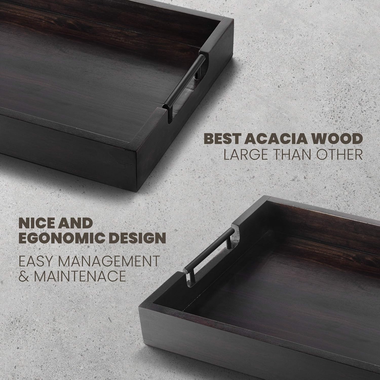 Ottoman Tray, Acacia Wood Serving Tray with Metal Handles, 16.5x12.5in Food Drinks Tray for Coffee Table, Breakfast, Dinner & Bar, Rustic Decorative Storage Tray for Ottoman, Kitchen, Packaging