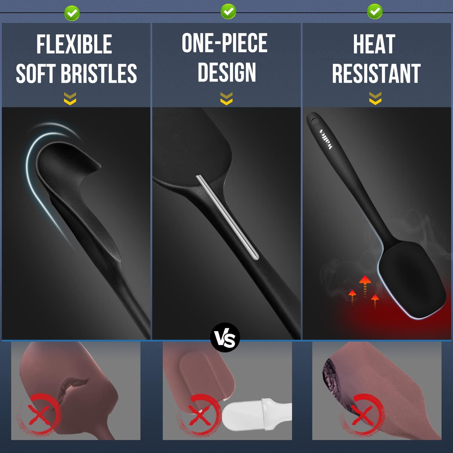 - One-Piece Design:Make sure that your silicone spatulas don't trap food particles, clean up easy and keep your food safe. Ergonomic handle is very easy to grip ! Each spatula has a perfect angle and a soft silicone surface, which is very easy to scrape the food in the bowl
