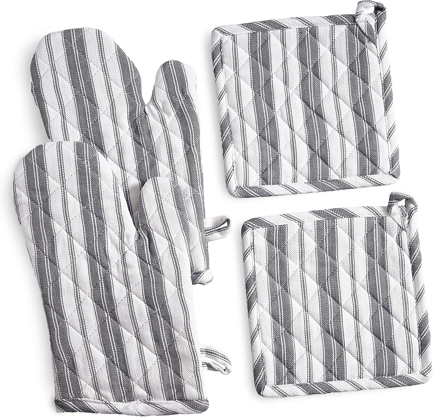 - Oven Mitts & Potholder Set - Durable Heat Resistant Gloves - Thick Mittens for Kitchen - Suitable for Cooking, Baking, Grilling – BBQ - 2 Oven Mitts & 2 Potholders – Dark Grey Stripes - Casa De Lan