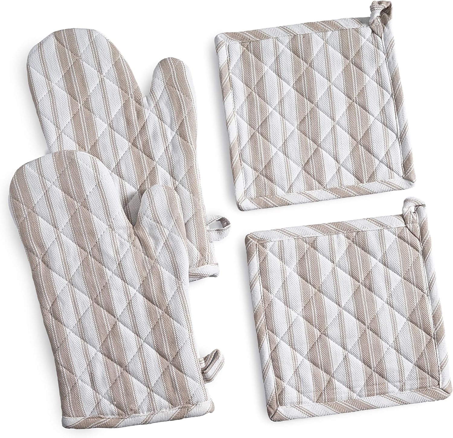 Oven Mitts & Potholder Set - Durable Heat Resistant Gloves - Thick Mittens for Kitchen - Suitable for Cooking, Baking, Grilling – BBQ - 2 Oven Mitts & 2 Potholders – Taupe Stripes - Casa De Lan