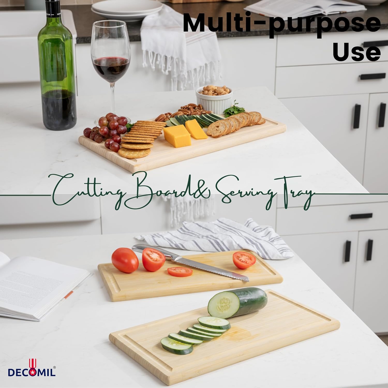 DECOMIL-Bamboo Wood Cutting Board Set of 2, Wood Serving Board, 15.25 x 8.25 Inch Chopping Boards for Charcuterie, Vegetables, Meat, for DIY projects