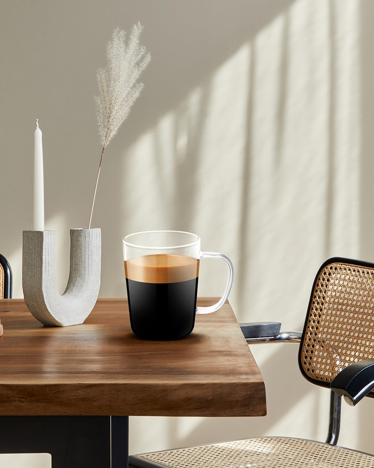 - HEALTHY AND ENVIRONMENTALLYFRIENDLY:Whether at home,laboratory or in the office,this borosilicate coffee glass has super chemical stability and strong resistance to acids, alkalis and preservatives,so you don't have to worry about harmful chemicals getting into your stomach by mistake.So,this healthy and environmentally friendly transparent coffee cup will become the first choice for coffee lovers.