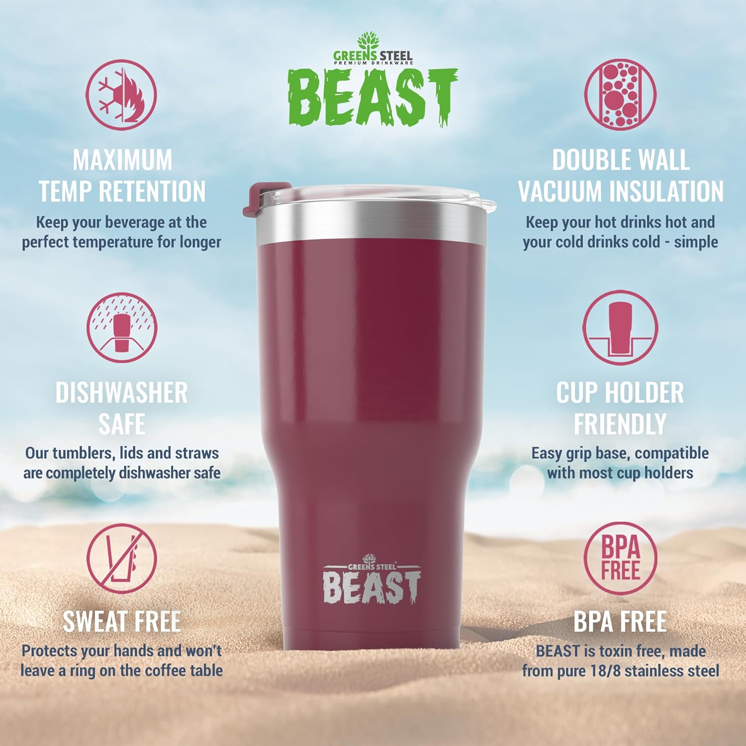 - BIGGER & BETTER – NEW HUGE 40oz BEAST has arrived! Offering unprecedented capacity. Now hold even more of your favorite beverage at the perfect temperature for longer!