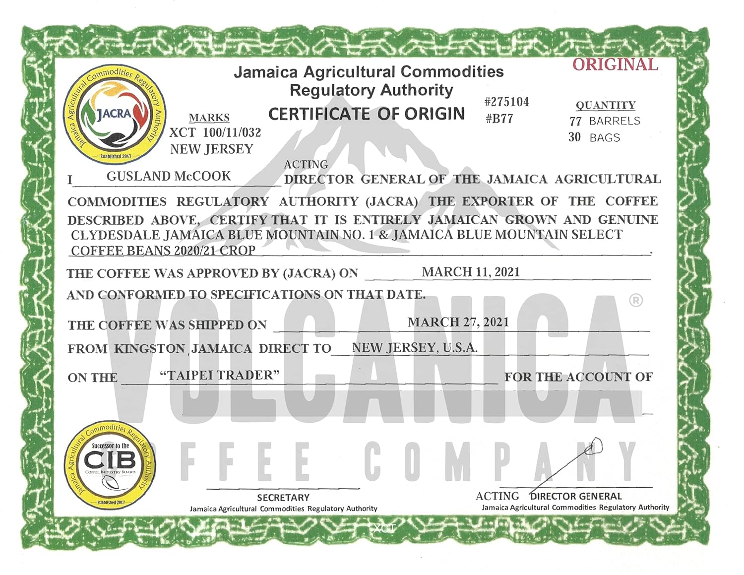 - 100% Pure Jamaica Blue Mountain Coffee Certified by the Jamaica Agricultural Department for a pure authentic taste.