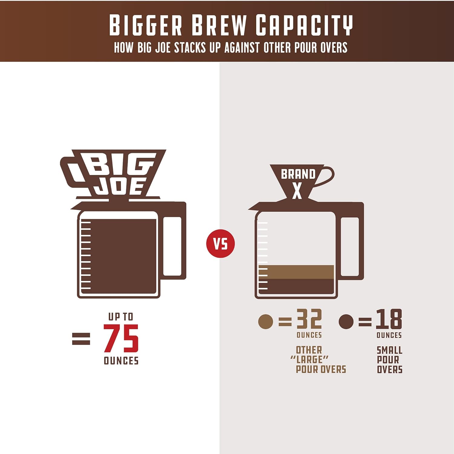 - BREWS ANY AMOUNT UP TO 75 OUNCES: Whether you want a single cup, 8 cups, 10 cups, 12 cups, or more, Big Joe is great for brunches, entertaining, and hosting events, as it can brew large quantities of coffee at once.