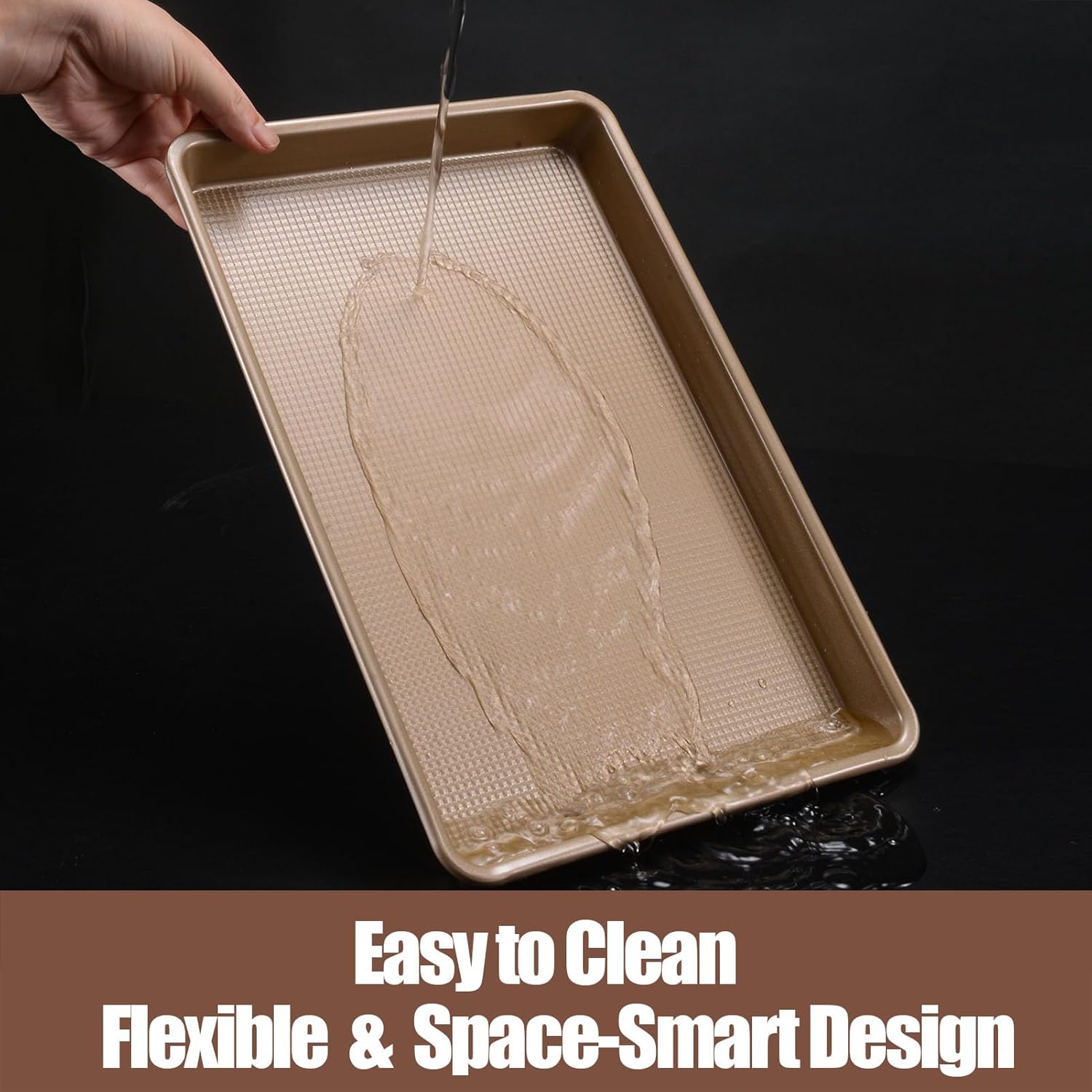 - PFOA-Free / Non Toxic Nonstick x 2X Rust Guard : Dual-layer coating (nonstick + anti-rust) ensures effortless release and extends lifespan 3X vs. generic baking pans. * Rust-proof & scratch-resistant cookie sheets.*