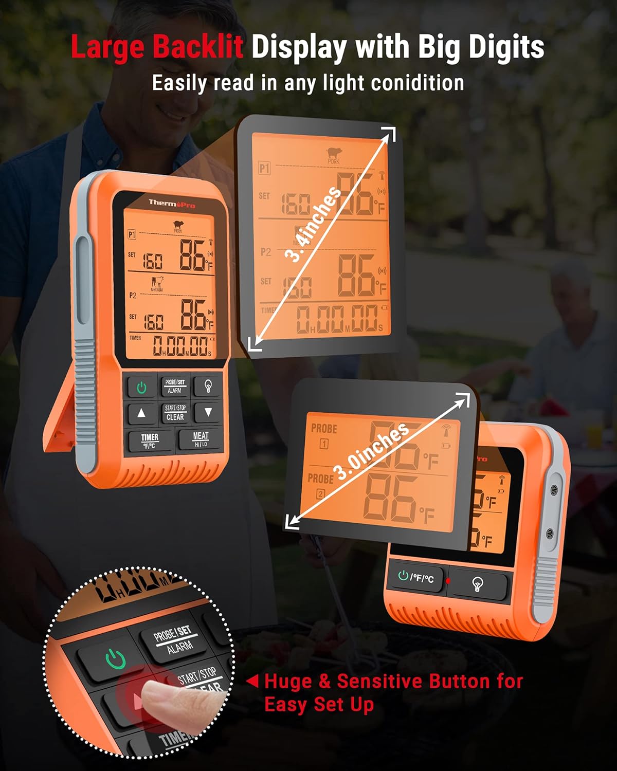 - 500FT outdoor monitoring: Unlike with bluetooth meat thermometer limited range of only 100ft; ThermoPro wireless outdoor fryer accessory for cooking provides best in class, reliable connection of up to 500ft to ensure you can monitor from anywhere