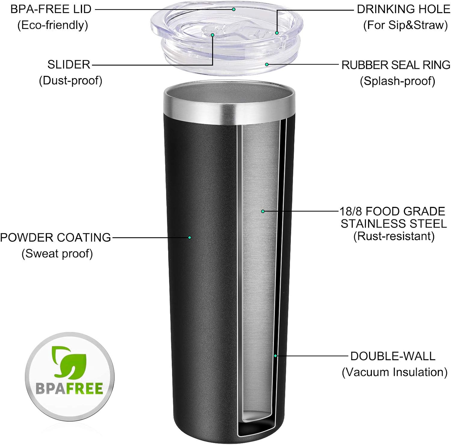 - Perfect gift set: Each insulated tumbler comes with 1 x plastic straw, 1 x slide lid. This slim tumbler is a stylish and practical gift for your friends, families, colleagues on birthday, Christmas, Valentine's Day, Halloween, Mother's Day, Father's Day