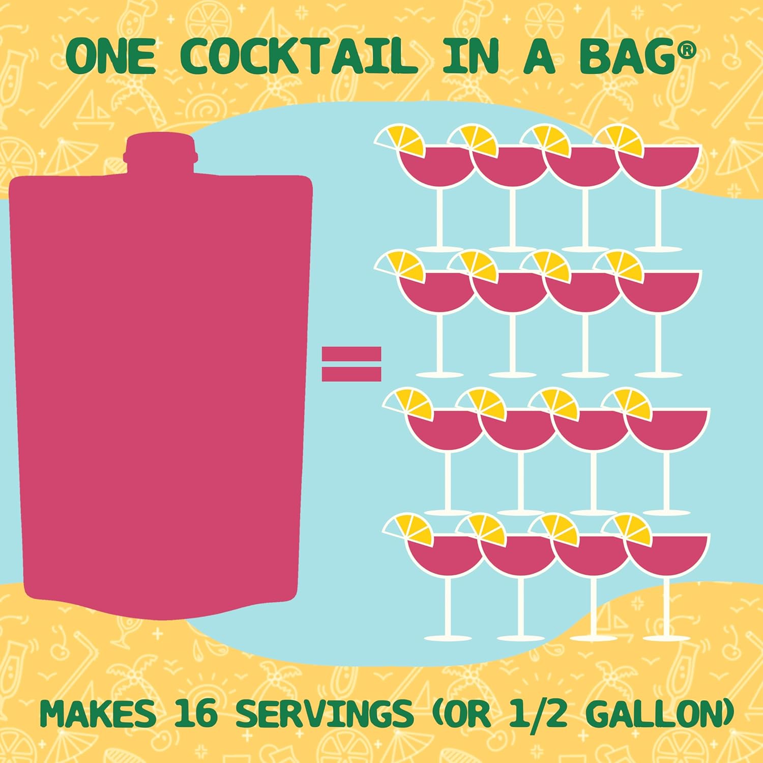 - Party Sized!: Our frozen sangria cocktail mixer offers 16 servings per bag - that's a lot of cocktails! Perfect for those summer parties or family BBQs. Only want one serving? Just pop the cap back on and throw it in the freezer for later.