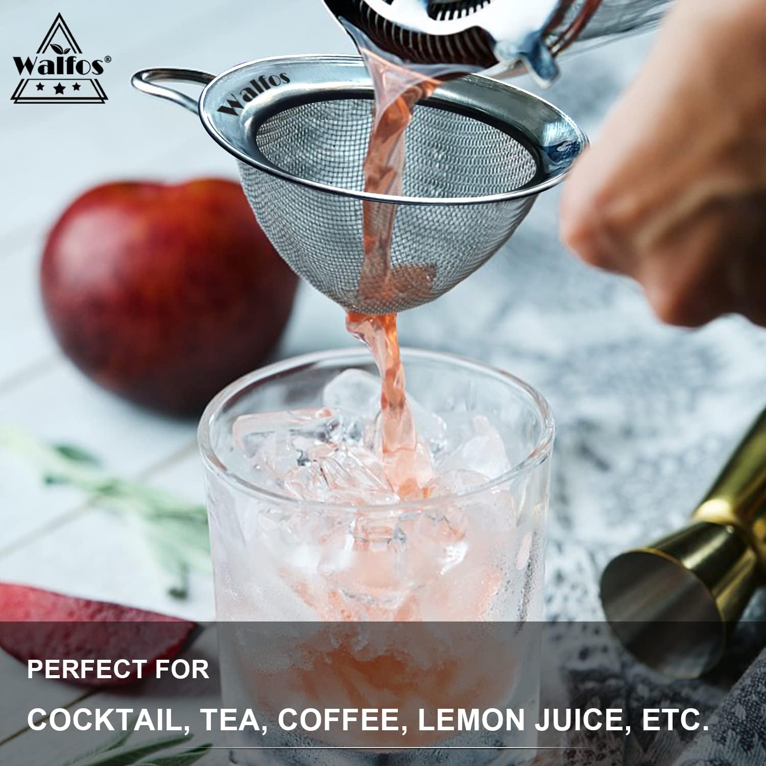 - MULTIPLE-USE: WALFOS mini strainers are great for filtering matcha powder and coffee grounds, steeping loose leaves tea, straining cocktail, juice, and other beverages, sifting flour, dusting powdered sugar, and more. A must have to sifting and straining wet or dry ingredients