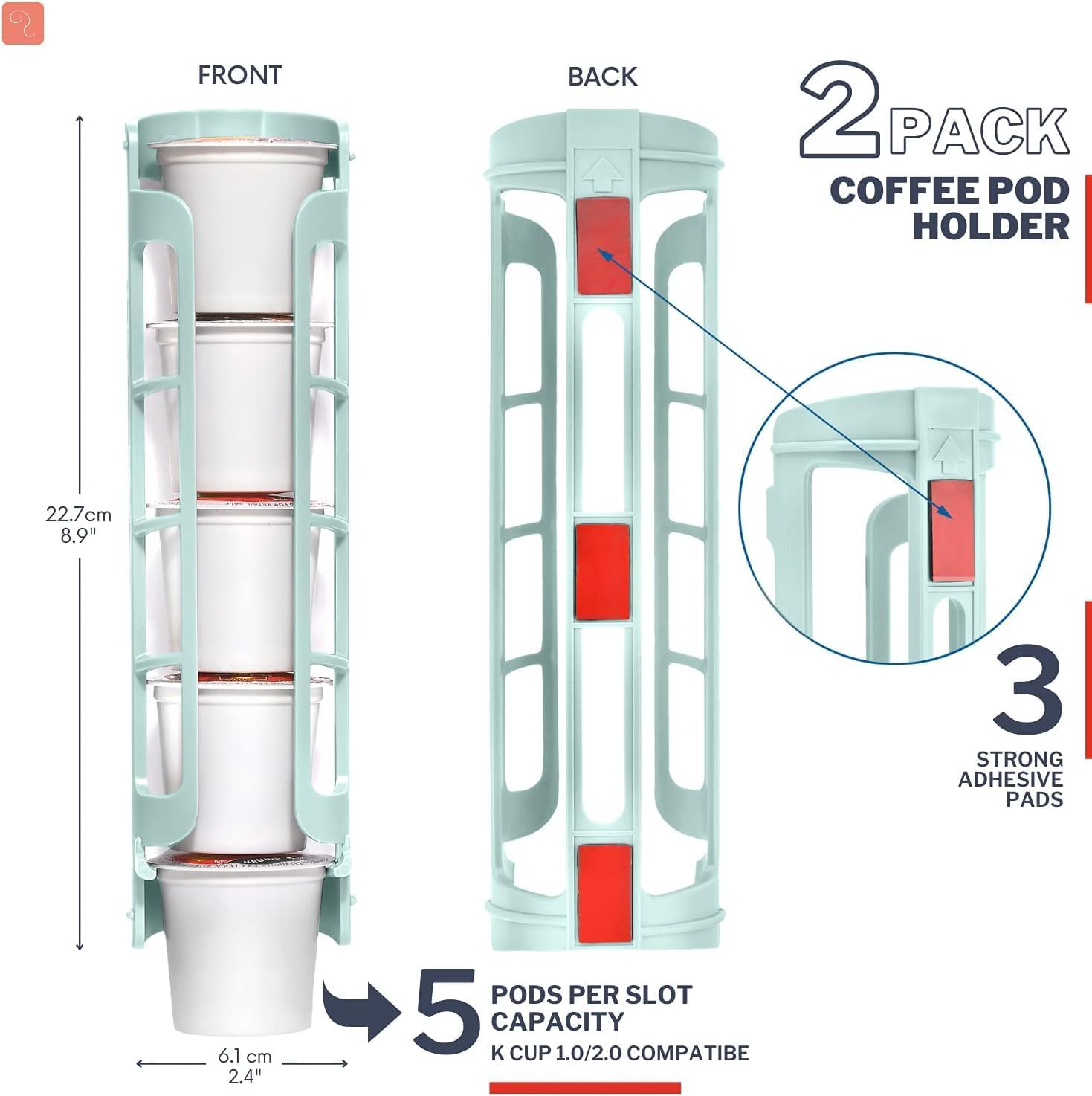 STORAGENIE K Cup Holder for Keurig, Coffee pod Storage, Side Mount | Wall Mount, Perfect for Small Counters (2 Rows/For 10 K Cups, OASIS BLUE)