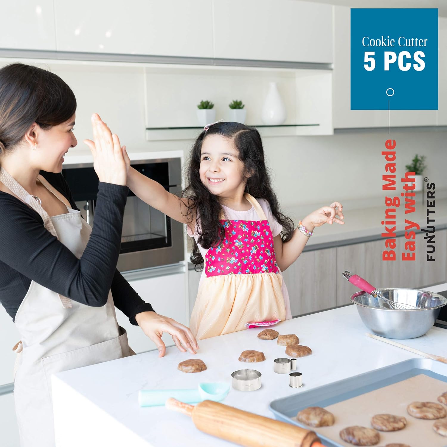 - Create a Fun At-Home Kitchen Bakery: Every cookie and biscuit cutter set comes with 1, 2, 3, 4, and 5 inches metal rings, each with a 2” depth, so you can expand those baking recipes and cookbook ideas to include cakes, pastries, scones, or even pizza.