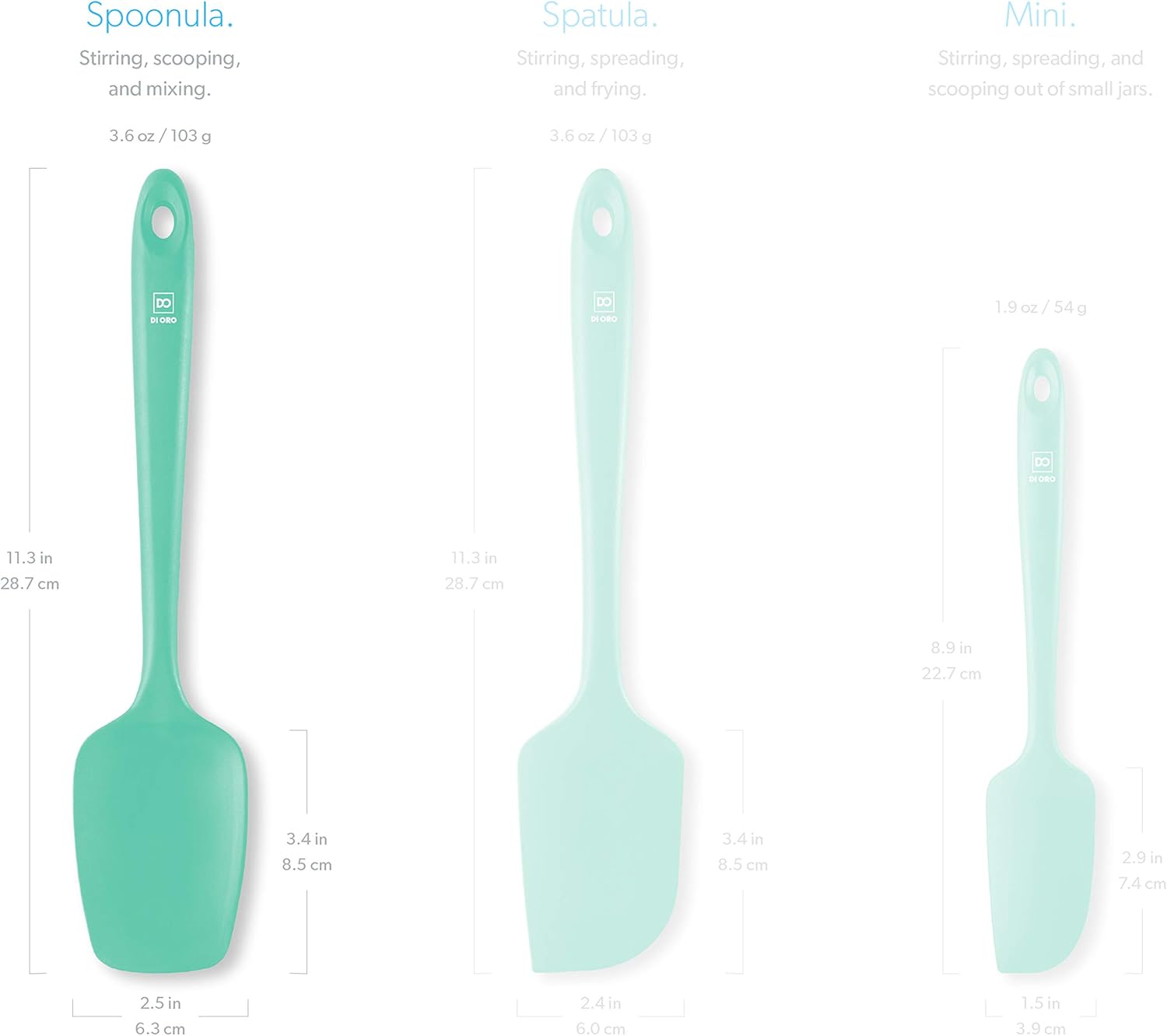 DI ORO Silicone Spoon Spatula - Forever Warranty - 600°F Heat-Resistant Large Silicone Spoonula Scraper - BPA Free Nonstick Cookware Safe Rubber Kitchen Utensil for Baking, Cooking, & Mixing (Mint)