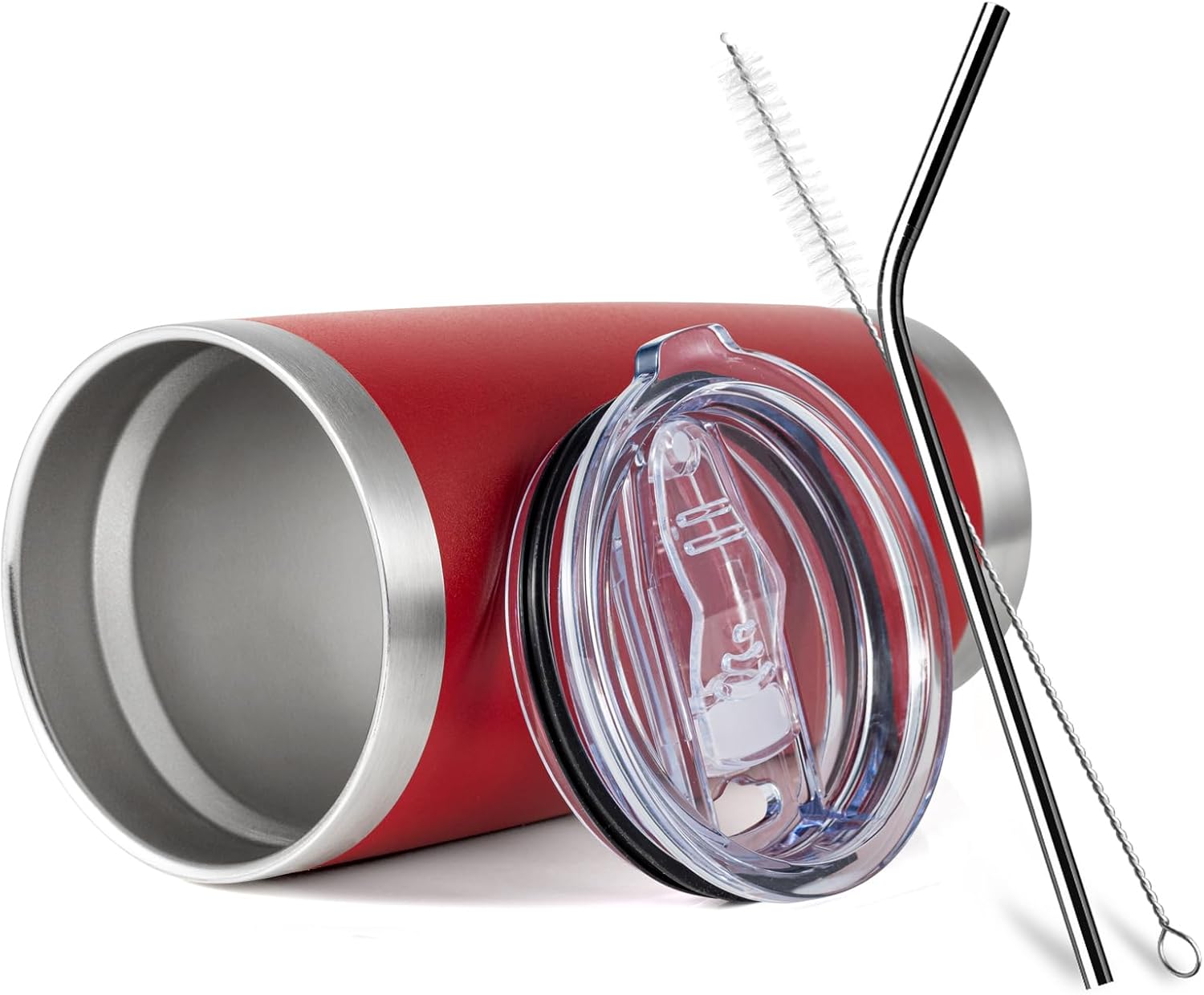 COMOOO 20oz Double Wall Vacuum Insulated Travel Mug, Stainless Steel Tumbler with Lid and Straw Durable Powder Coated Insulated Coffee Cup for Cold & Hot Drinks (red,12 pack
