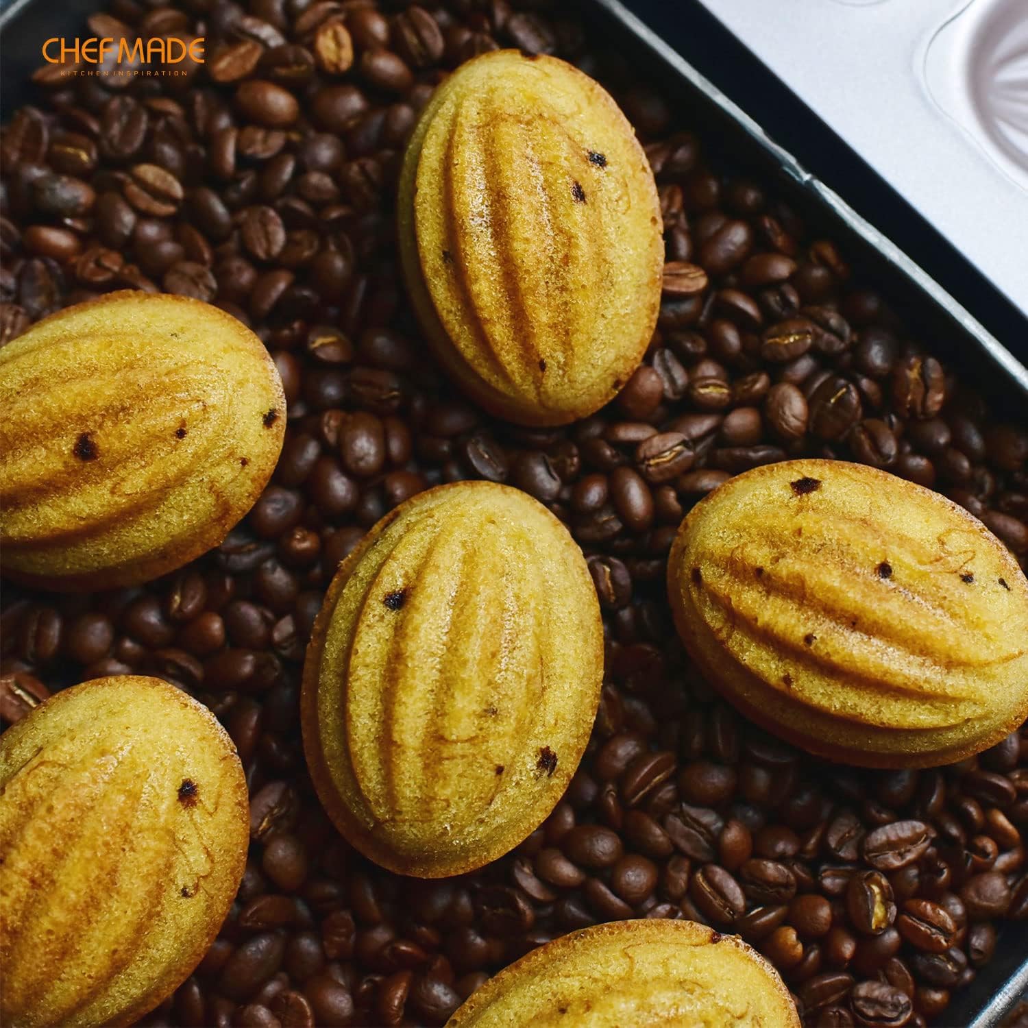 CHEFMADE Muffin Cake Pan, 12-Cavity Non-Stick Rugby-Shaped Bakeware for Oven Baking (Champagne Gold)