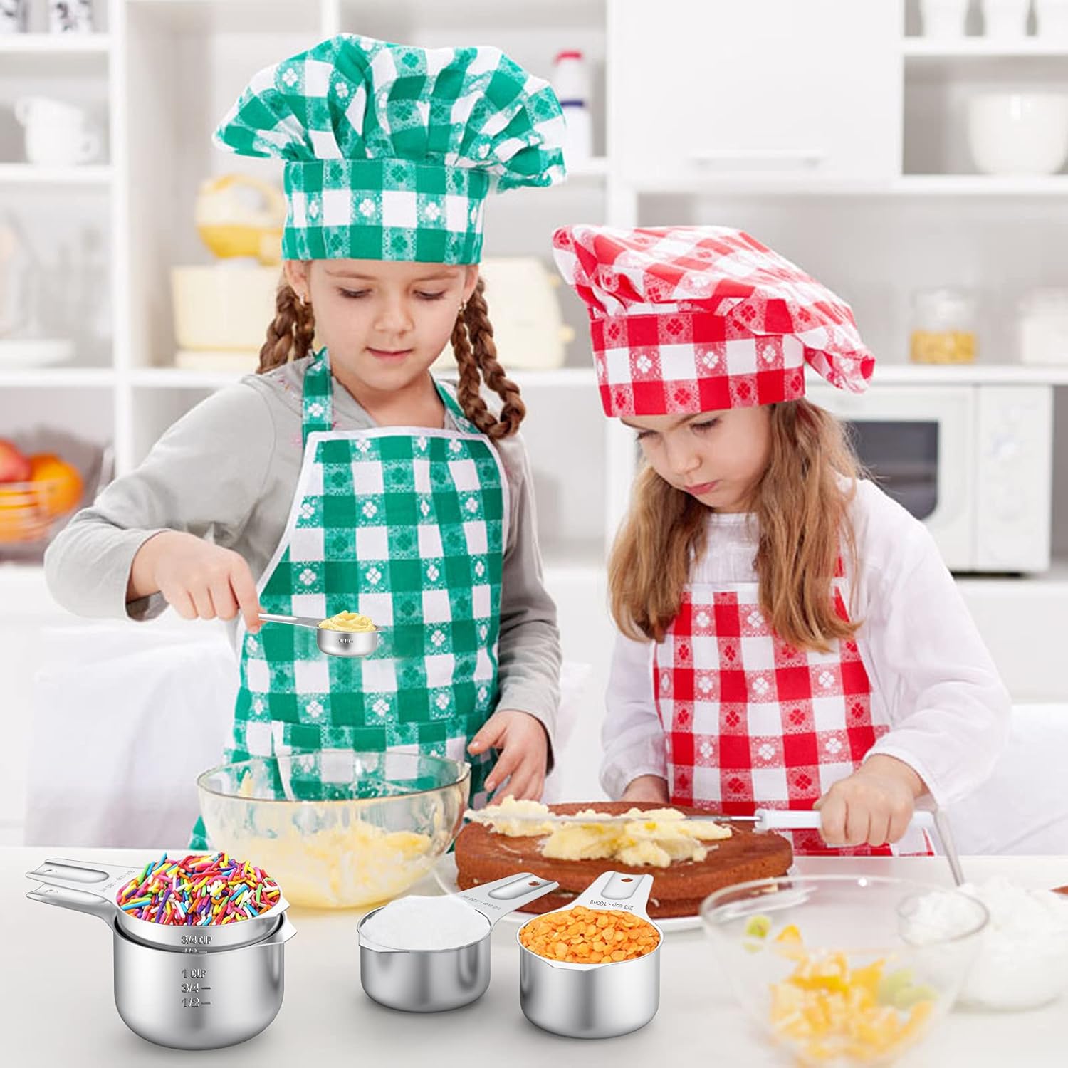 - NO MORE GUESSWORK: Each cup and spoon have engraved U.S. and metric measurement markings, which are easy to read and never fade. No more guess in kitchen!