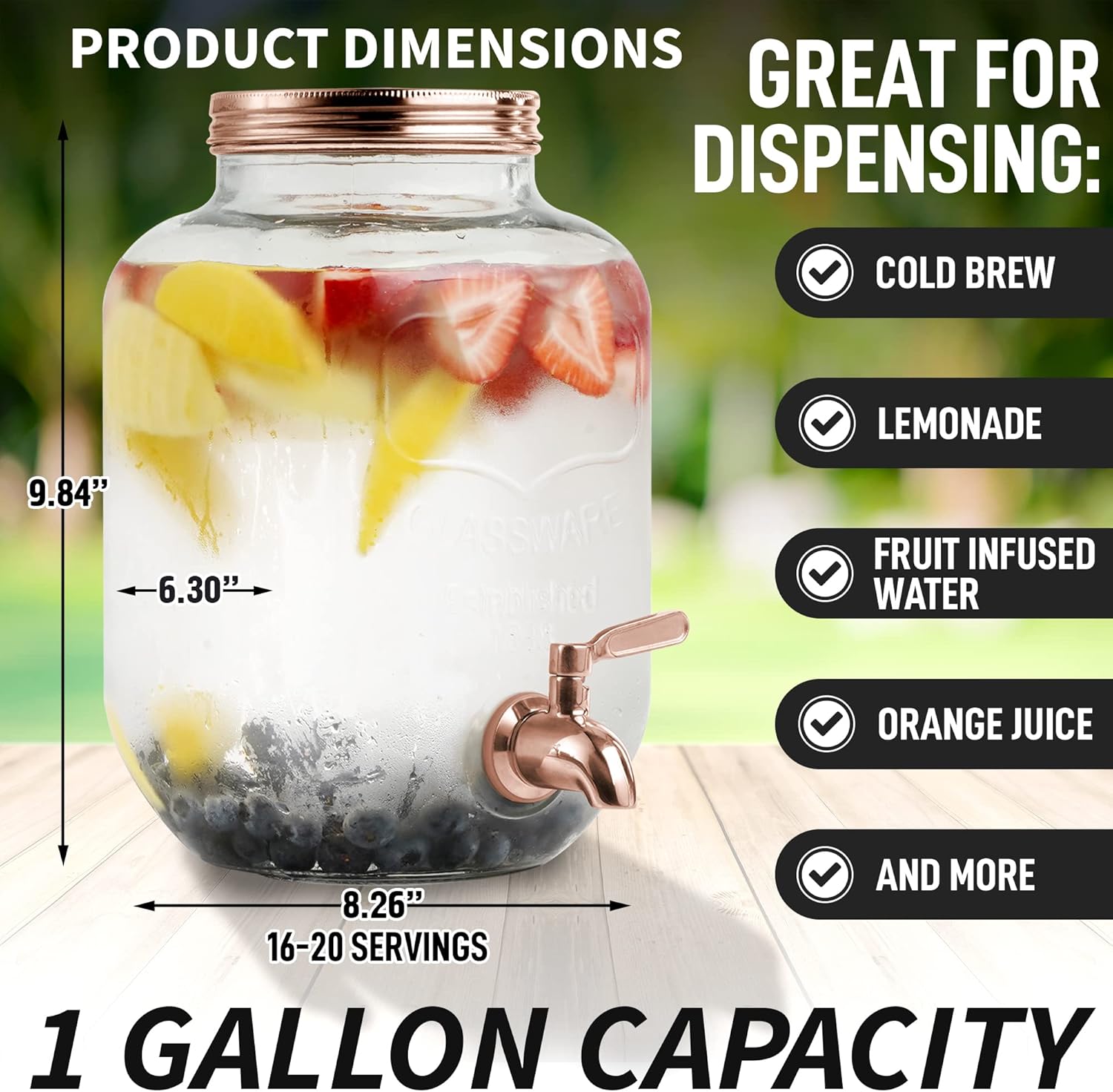 - Capacity 1 Gallons : Material Shock Resistant Glass, Food-Grade Stainless Steel