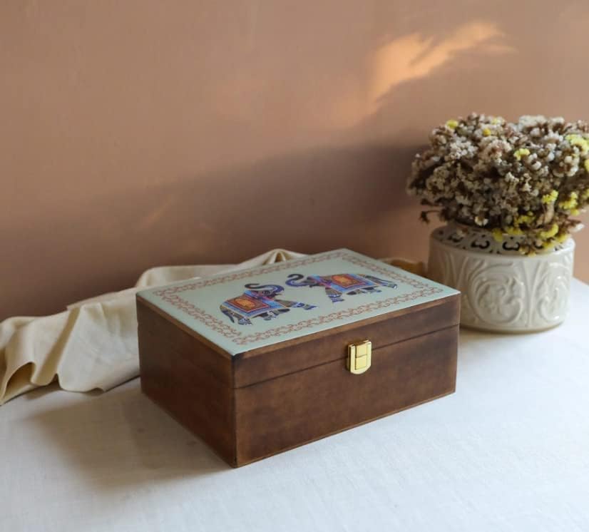 Octavius Gift's Select - Assorted Tea in Elephant Printed Wooden Box | 6 Flavors, 90 Tea Bags | Black & Green | Tea Gifts for Women & Men | Tea Variety Pack Gift Box