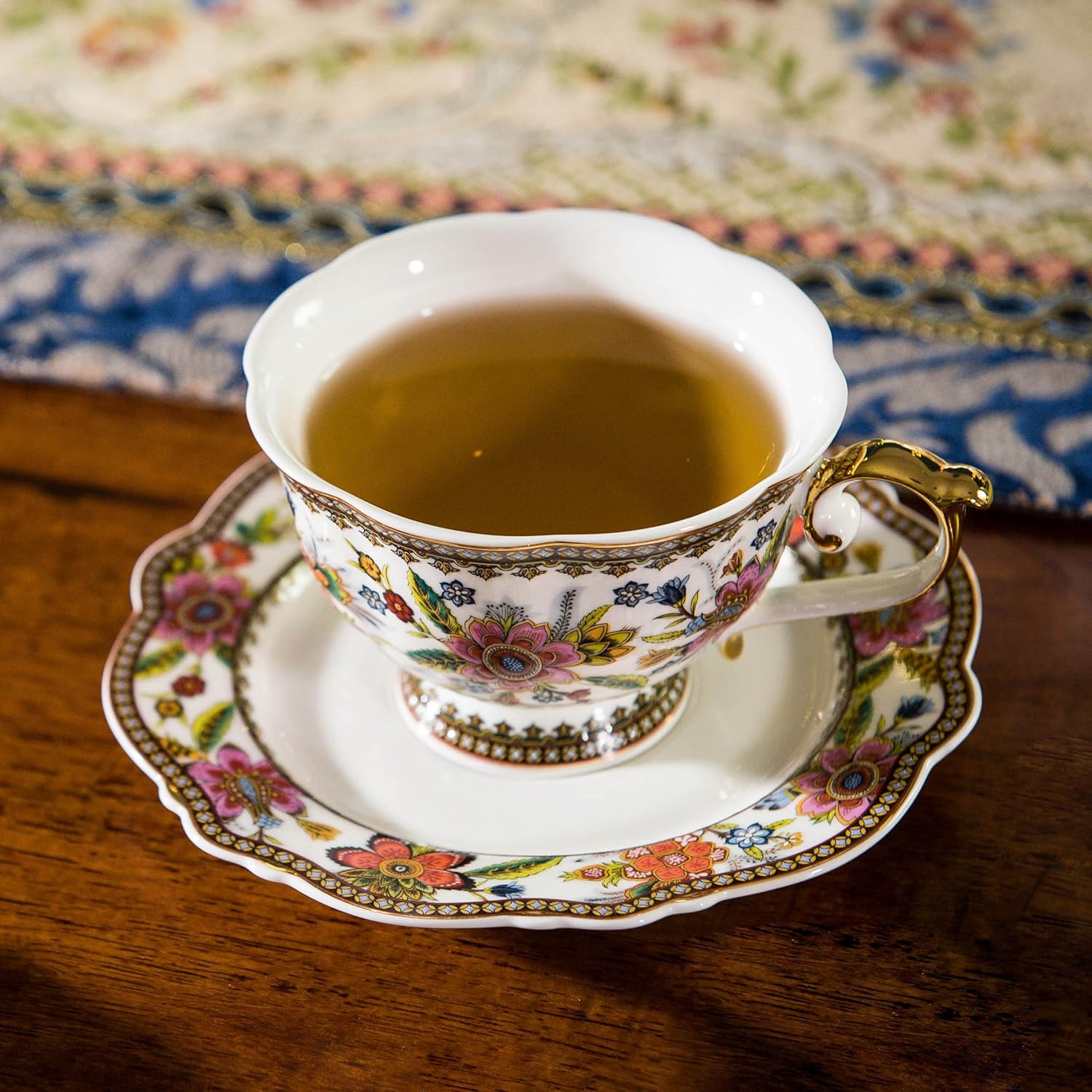 - Bone China Tea Cup and Saucer Set for 1: This beautiful teacup and saucer set mades of more than 36% bone china, fired at high temperature for long lasting beauty and durability. Bone china tea cup and saucer also is healthy and lightweight for daily use