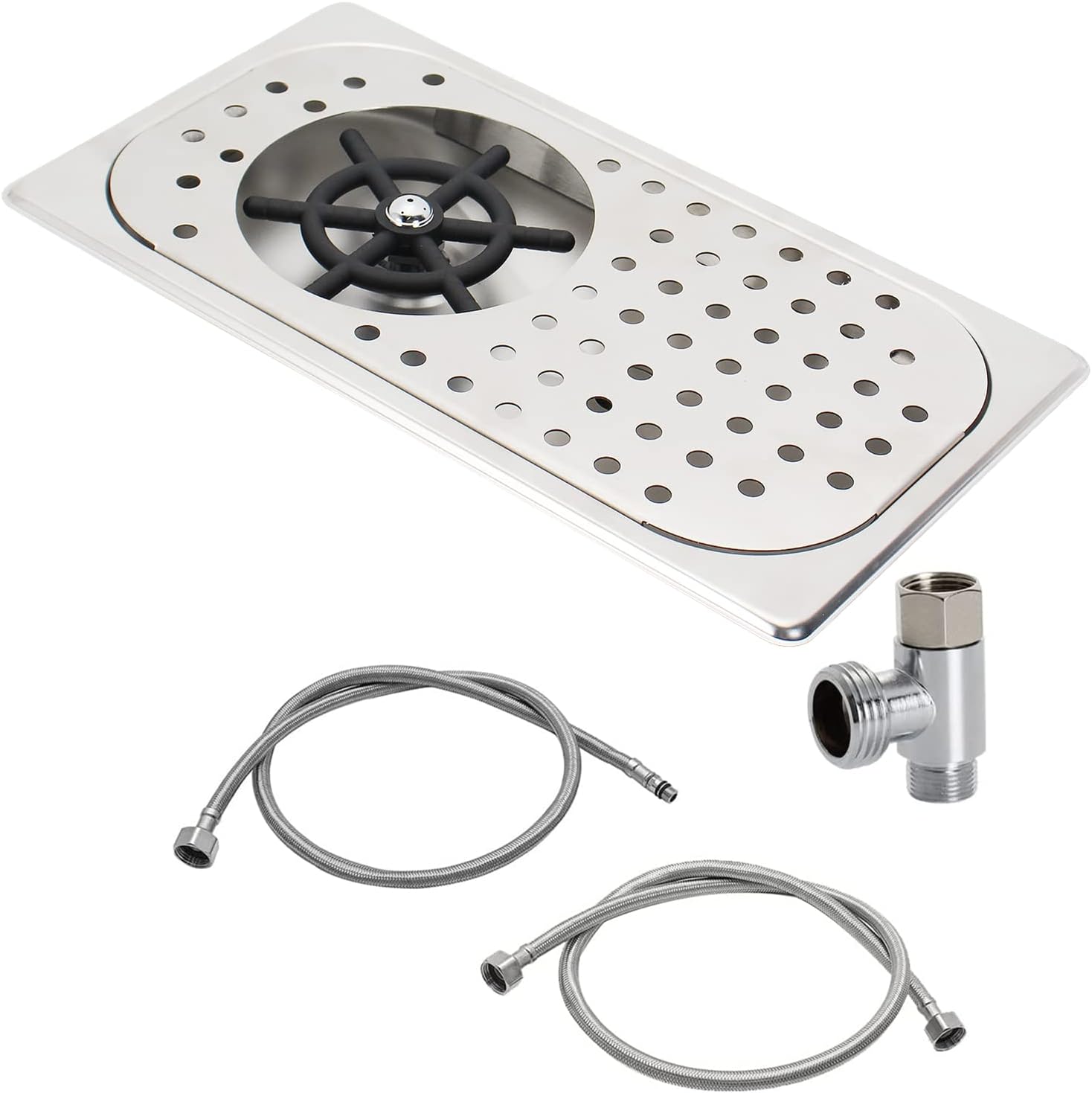 - Package Includes: 1 x Pitcher Rinser,1 x Water Inlet Pipes,1 x Water Outlet Pipes , 1 x 1 x 3-way Tee Connector Adapter (3/8" 3/8"and 1/2")