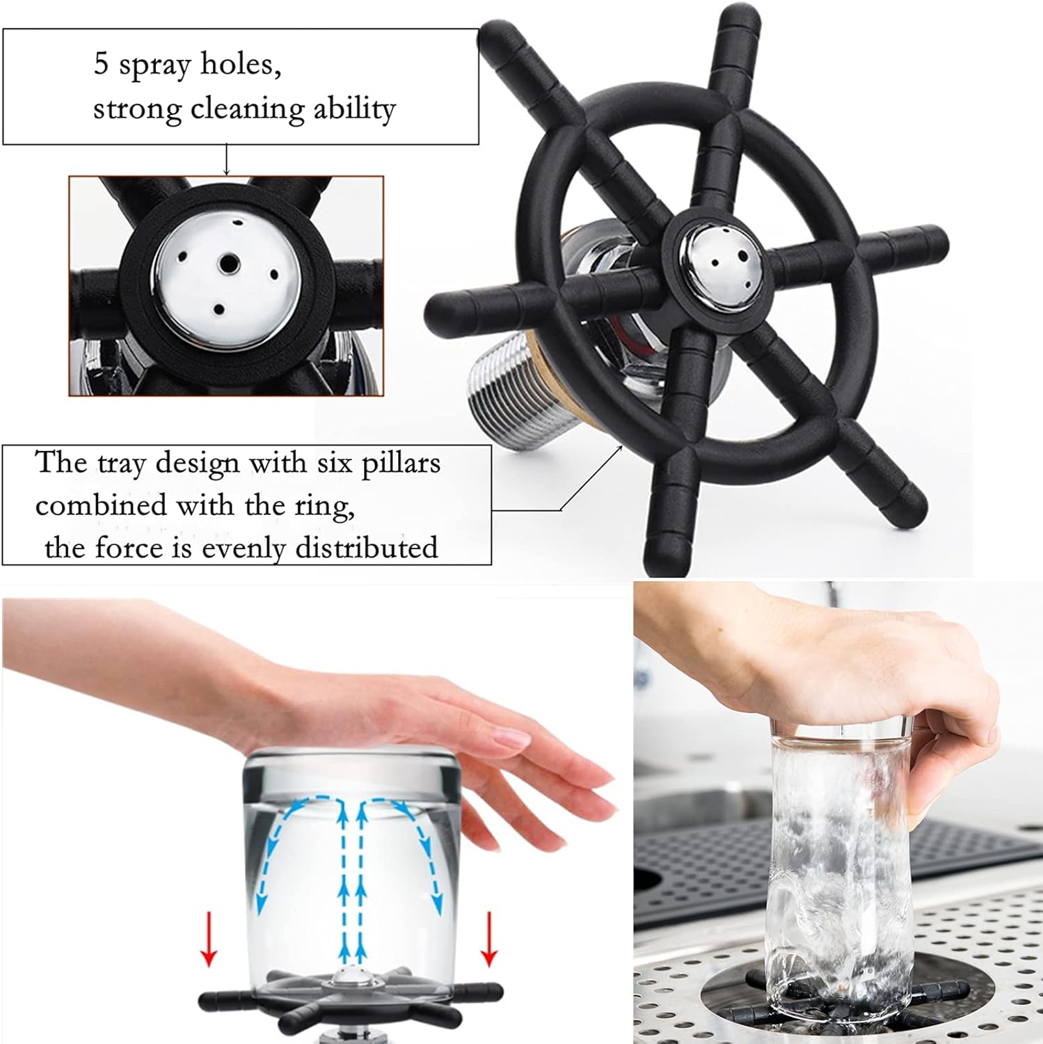 - Simple To Use: Put the glass/cup downwards and press the bottom, the spray water will come out for cleaning. When the cleaning is completed, remove the glass/cup and the spray will stop,high pressure washing, saves time, water and energy, very practical and convenient